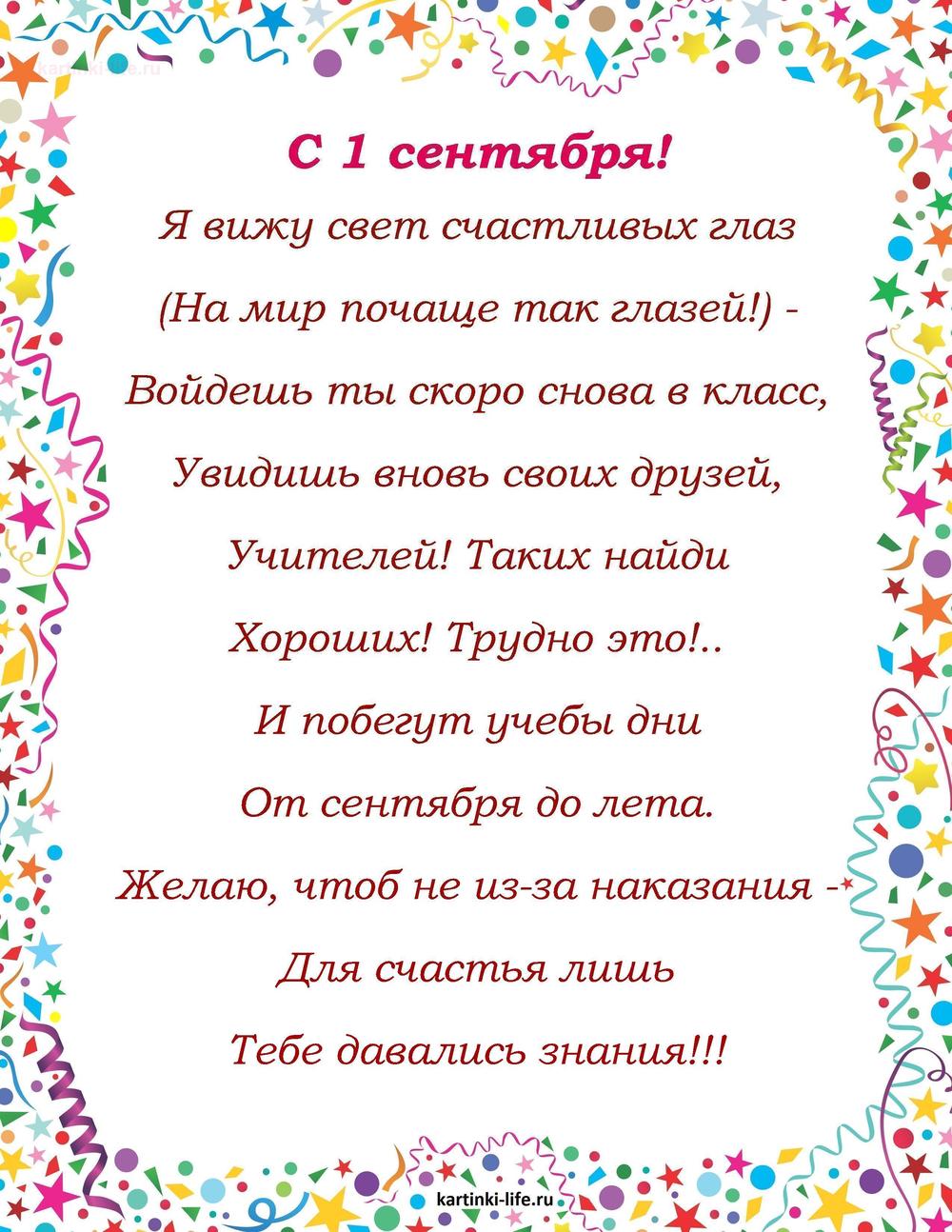 ← Предыдущая ГОЛОСОВЫЕСледующая → С 1 Сентября. Красивые открытки и картинки пока 0оставить комментарий РЕКОМЕНДОВАНО К ПРОСМОТРУ С Днëм знаний!!!! С 1 сентября!!. [1 сентября, начало учебного года, День знаний - Музыкальные поздравления]ОТКРЫТЬСКАЧАТЬ 1 сентября. Красивое пожелание первоклассникам на 1 сентября. Перед тобой первые ступени счастливого и доброго пути. Желаю радостно и вдохновенно с удачей под руку идти! С 1 сентября!ОТКРЫТЬСКАЧАТЬ Открытка, картинка, 1 сентября, начало учебного года, день знаний, школа, первоклассница. Открытки Открытка, картинка, 1 сентября, начало учебного года, день знаний, школа, первоклассница, осень.ОТКРЫТЬСКАЧАТЬ Анимированная открытка День знанийОТКРЫТЬСКАЧАТЬ 1 сентября. Красные цветы на День знаний. С Днем знаний!ОТКРЫТЬСКАЧАТЬ Открытка, картинка, сентября, начало учебного года, день знаний, школа, поздравление, цветы. Открытки Открытка, картинка, сентября, начало учебного года, день знаний, школа, поздравление, цветы, стихи, букет, книги.ОТКРЫТЬСКАЧАТЬ Открытка, картинка, 1 сентября, начало учебного года, день знаний, поздравление, первый звонок, котенок. Открытки Открытка, картинка, 1 сентября, начало учебного года, день знаний, поздравление, первый звонок, котенок, учеба, цветы, глобус.ОТКРЫТЬСКАЧАТЬ Открытка, картинка, сентября, начало учебного года, день знаний, школа, поздравление, доска. Открытки Открытка, картинка, сентября, начало учебного года, день знаний, школа, поздравление, школьная доска.ОТКРЫТЬСКАЧАТЬ 1 СЕНТЯБРЯ Праздник День Знаний Красивое поздравление Музыкальная открытка песня. [1 сентября, начало учебного года, День знаний - Музыкальные поздравления]ОТКРЫТЬСКАЧАТЬ Открытка С Днем знаний!ОТКРЫТЬСКАЧАТЬ 299 открытокС 1 СЕНТЯБРЯ С ДНЕМ ЗНАНИЙ ПОЖЕЛАНИЯ Открытки с Днем рождения Продолжить просмотр Поздравление на первое сентября, на день знаний. Я вижу свет счастливых глаз.