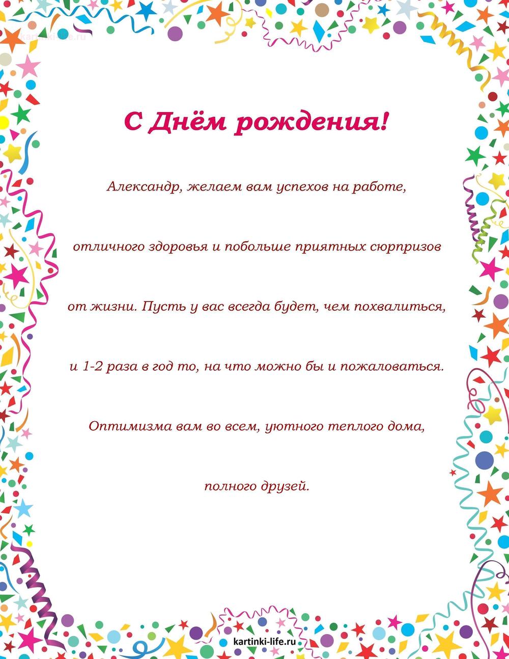 ← Предыдущая ГОЛОСОВЫЕСледующая → Выберите и нажмите! Другие варианты открыток с этим текстом Скачать Скачать Скачать Скачать Скачать Скачать Скачать Скачать Скачать Скачать Скачать Скачать Скачать Скачать Скачать СкачатьАлександр. Открытки С Днем рождения по именам. Поздравления. РЕКОМЕНДОВАНО К ПРОСМОТРУ Именные открытки Александру с Днем рождения, мужчине. Христианская открытка. Ангелочки, храм.ОТКРЫТЬСКАЧАТЬ С Днем Рождения Александр - Поздравления - Пожелания. [Поздравления Александру с днем рождения, мужчине]ОТКРЫТЬСКАЧАТЬ Картинка с футбольным мячом на стопке денег Саше на День рожденияОТКРЫТЬСКАЧАТЬ Александр, с днем рождения от Путина!. [Александр, с днем рождения, мужчине]ОТКРЫТЬСКАЧАТЬ Именные открытки Александру с Днем рождения, мужчине. Пожелание, салют, мировые достопримечательности.ОТКРЫТЬСКАЧАТЬ [С днем рождения] открытки [мужские имена] [Александр]. Трогательная картинка с Днем рождения скачать на телефон.ОТКРЫТЬСКАЧАТЬ Авторская открытка с днем рождения АлександруОТКРЫТЬСКАЧАТЬ Поздравляю, Саша, тебя в твой день рождения!. [Поздравления Александру с днем рождения, мужчине]ОТКРЫТЬСКАЧАТЬ Классная анимационная открытка с днем рождения Санек с шампанским!ОТКРЫТЬСКАЧАТЬ Именные открытки Александру с Днем рождения, мужчине. Торт и пожелание.ОТКРЫТЬСКАЧАТЬ Открытки С Днем рождения по именам Открытки С Днем рождения по категориям Продолжить просмотр Поздравление с Днем рождения Александру в прозе мужчине. Александр, желаем вам успехов на работе, отличного здоровья и побольше