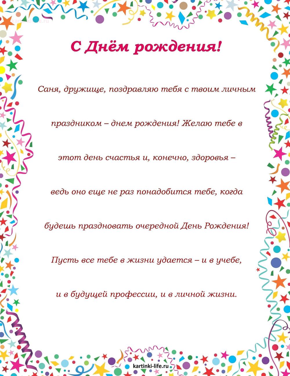 ← Предыдущая ГОЛОСОВЫЕСледующая → Выберите и нажмите! Другие варианты открыток с этим текстом Скачать Скачать Скачать Скачать Скачать Скачать Скачать Скачать Скачать Скачать Скачать Скачать Скачать Скачать Скачать СкачатьАлександр. Открытки С Днем рождения по именам. Поздравления. РЕКОМЕНДОВАНО К ПРОСМОТРУ Именные открытки Александру с Днем рождения, мужчине. Матроскин, шары.ОТКРЫТЬСКАЧАТЬ [С днем рождения] открытки [мужские имена] [Александр]. Душевная открытка с днем рождения на мобильный.ОТКРЫТЬСКАЧАТЬ Именные открытки Александру с Днем рождения, мужчине. Подарки, автомобиль, воздушные шарики.ОТКРЫТЬСКАЧАТЬ Авторская красивая открытка с днем рождения АлександрОТКРЫТЬСКАЧАТЬ Открытка на День рождения Александру - морские звезды на песке и пожеланиеОТКРЫТЬСКАЧАТЬ Именные открытки Александру с Днем рождения, мужчине. Путин поздравляет Александра с Днем рождения. Торт, цветы, шампанское.ОТКРЫТЬСКАЧАТЬ Денежная анимация с днем рождения Александр!ОТКРЫТЬСКАЧАТЬ Именные открытки Александру с Днем рождения, мужчине. Пожелание, цветы.ОТКРЫТЬСКАЧАТЬ Открытка с Днем рождения - сплетенные пивные кружки и пожеланиеОТКРЫТЬСКАЧАТЬ Именные открытки Александру с Днем рождения, мужчине. Автомобиль, букет из пива.ОТКРЫТЬСКАЧАТЬ Открытки С Днем рождения по именам Открытки С Днем рождения по категориям Продолжить просмотр Поздравление с Днем рождения Александру в прозе мужчине. Саня, дружище, поздравляю тебя с твоим личным праздником – днем