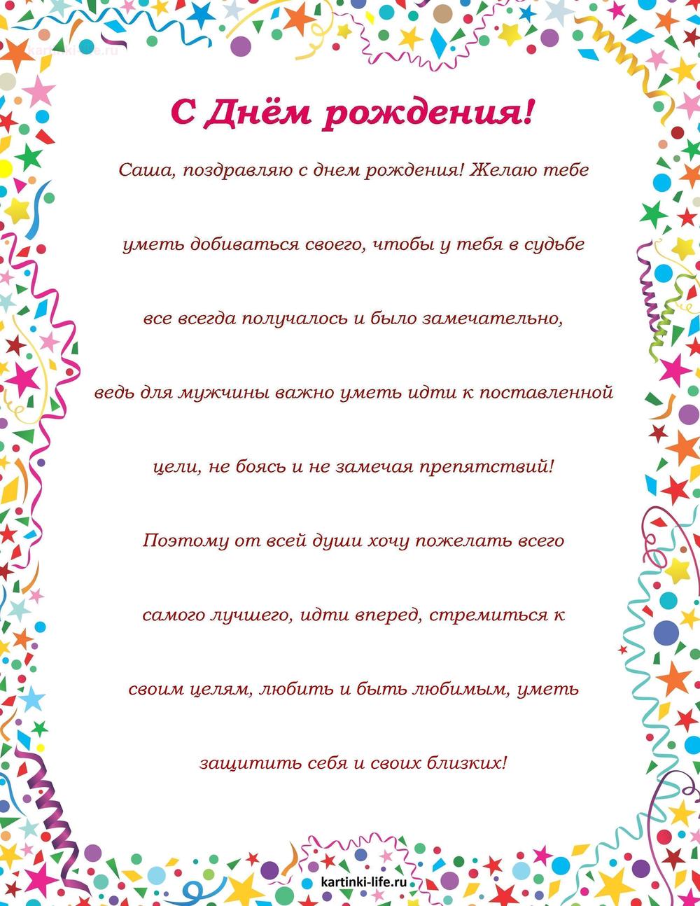 ← Предыдущая ГОЛОСОВЫЕСледующая → Выберите и нажмите! Другие варианты открыток с этим текстом Скачать Скачать Скачать Скачать Скачать Скачать Скачать Скачать Скачать Скачать Скачать Скачать Скачать Скачать Скачать СкачатьАлександр. Открытки С Днем рождения по именам. Поздравления. РЕКОМЕНДОВАНО К ПРОСМОТРУ Картинка Саше на 2 годикаОТКРЫТЬСКАЧАТЬ Картинка Саше на 1 годикОТКРЫТЬСКАЧАТЬ С днем рождения, Александр! Очень красивое яркое поздравление с днем рождения!. [Поздравления Александру с днем рождения, мужчине]ОТКРЫТЬСКАЧАТЬ Именные открытки Александру с Днем рождения, мужчине. Автомобиль, доллары.ОТКРЫТЬСКАЧАТЬ Прикольная картинка Саня с днем рожденияОТКРЫТЬСКАЧАТЬ Именные открытки Александру с Днем рождения, мужчине. Пожелание, гитара.ОТКРЫТЬСКАЧАТЬ С Днем рождения, Александр Геннадьевич. [Александр, с днем рождения, мужчине]ОТКРЫТЬСКАЧАТЬ Именные открытки Александру с Днем рождения, мужчине. Собачка с розой.ОТКРЫТЬСКАЧАТЬ Поздравление для Александра от Путина. [Александр, с днем рождения, мужчине]ОТКРЫТЬСКАЧАТЬ Именные открытки Александру с Днем рождения, мужчине. Матроскин, шары.ОТКРЫТЬСКАЧАТЬ Открытки С Днем рождения по именам Открытки С Днем рождения по категориям Продолжить просмотр Поздравление с Днем рождения Александру в прозе мужчине. Саша, поздравляю с днем рождения! Желаю тебе уметь добиваться своего,