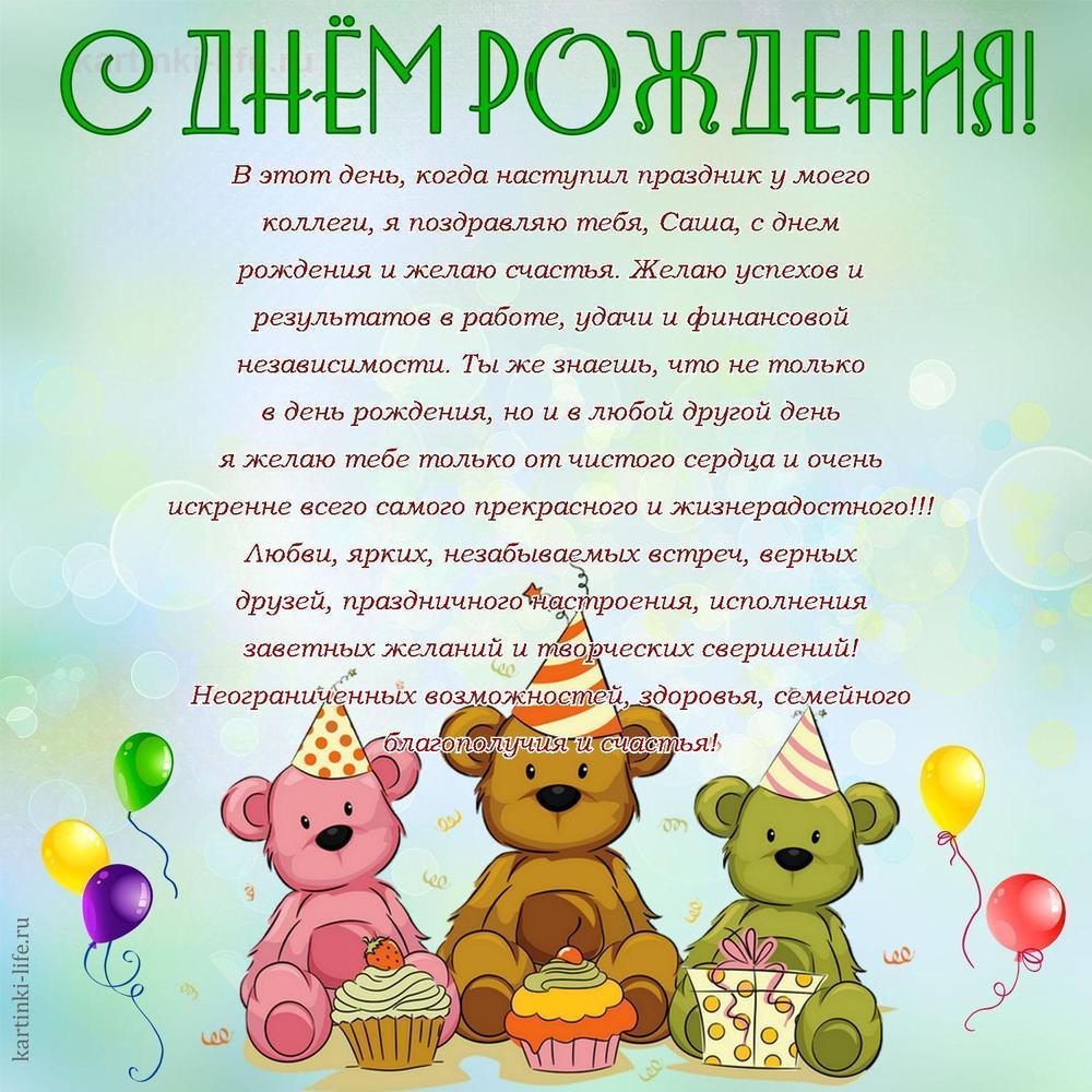 ← Предыдущая ГОЛОСОВЫЕСледующая → Выберите и нажмите! Другие варианты открыток с этим текстом Скачать Скачать Скачать Скачать Скачать Скачать Скачать Скачать Скачать Скачать Скачать Скачать Скачать Скачать Скачать СкачатьАлександр. Открытки С Днем рождения по именам. Поздравления. РЕКОМЕНДОВАНО К ПРОСМОТРУ Прикольная картинка Санька с днем рожденияОТКРЫТЬСКАЧАТЬ Именные открытки Александру с Днем рождения, мужчине. Ручные часы, автомобиль, авторучка.ОТКРЫТЬСКАЧАТЬ Именные открытки Александру с Днем рождения, мужчине. Пожелание, икра, цветы, доллары.ОТКРЫТЬСКАЧАТЬ Именные открытки Александру с Днем рождения, мужчине. Пожелание, цветы.ОТКРЫТЬСКАЧАТЬ С Днем рождения, Александр! Happy birthday, Alexander!. [Поздравления Александру с днем рождения, мужчине]ОТКРЫТЬСКАЧАТЬ С Днем Рождения, Александр. Прикольное поздравление от котика. [Поздравления Александру с днем рождения, мужчине]ОТКРЫТЬСКАЧАТЬ Именные открытки Александру с Днем рождения, мужчине. Коньяк, розы.ОТКРЫТЬСКАЧАТЬ Смешная открытка с днем рождения СашулеОТКРЫТЬСКАЧАТЬ Открытка на День рождения Александру - вид на закат в море с палубы яхтыОТКРЫТЬСКАЧАТЬ С Днем Рождения, Александр! Красивая песня для тебя!. [Поздравления Александру с днем рождения, мужчине]ОТКРЫТЬСКАЧАТЬ Открытки С Днем рождения по именам Открытки С Днем рождения по категориям Продолжить просмотр Поздравление с Днем рождения Александру в прозе мужчине. В этот день, когда наступил праздник у моего коллеги, я поздравляю
