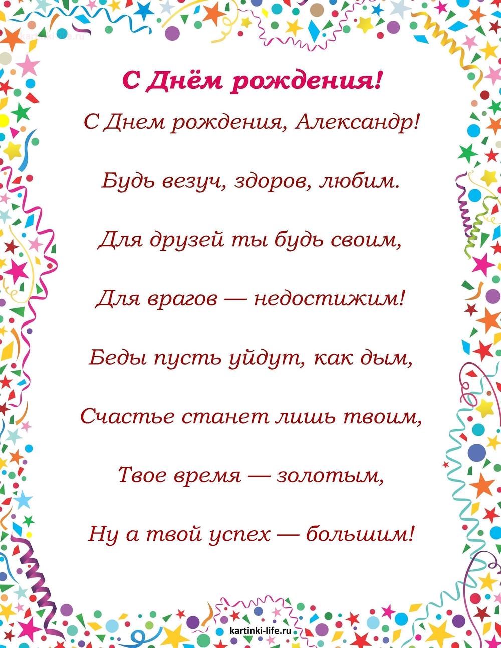 ← Предыдущая ГОЛОСОВЫЕСледующая → Выберите и нажмите! Другие варианты открыток с этим текстом Скачать Скачать Скачать Скачать Скачать Скачать Скачать Скачать Скачать Скачать Скачать Скачать Скачать Скачать Скачать СкачатьАлександр. Открытки С Днем рождения по именам. Поздравления. РЕКОМЕНДОВАНО К ПРОСМОТРУ Открытка с днем рождения Саше красивое поздравлениеОТКРЫТЬСКАЧАТЬ Именные открытки Александру с Днем рождения, мужчине. Пожелание, гитара.ОТКРЫТЬСКАЧАТЬ Именные открытки Александру с Днем рождения, мужчине. Ручные часы, автомобиль, авторучка.ОТКРЫТЬСКАЧАТЬ Александр, с днем рождения от Путина!. [Александр, с днем рождения, мужчине]ОТКРЫТЬСКАЧАТЬ Открытка с видом на дорогу для Саши на День рожденияОТКРЫТЬСКАЧАТЬ С Днем Рождения Александр - Поздравления - Пожелания. [Поздравления Александру с днем рождения, мужчине]ОТКРЫТЬСКАЧАТЬ Поздравление с днем рождения Саше. Открытки с именами. С Днем Рожденья Александр!ОТКРЫТЬСКАЧАТЬ Картинка Саше на 2 годикаОТКРЫТЬСКАЧАТЬ Именные открытки Александру с Днем рождения, мужчине. Автомобиль, букет из пива.ОТКРЫТЬСКАЧАТЬ С Днем Рождения, Александр! Очень Красивое Поздравление с Днем Рождения!. [Поздравления Александру с днем рождения, мужчине]ОТКРЫТЬСКАЧАТЬ Открытки С Днем рождения по именам Открытки С Днем рождения по категориям Продолжить просмотр Поздравление с Днем рождения Александру в стихах мужчине. C Днем рождения, Александр! Будь везуч, здоров, любим. Для друзей