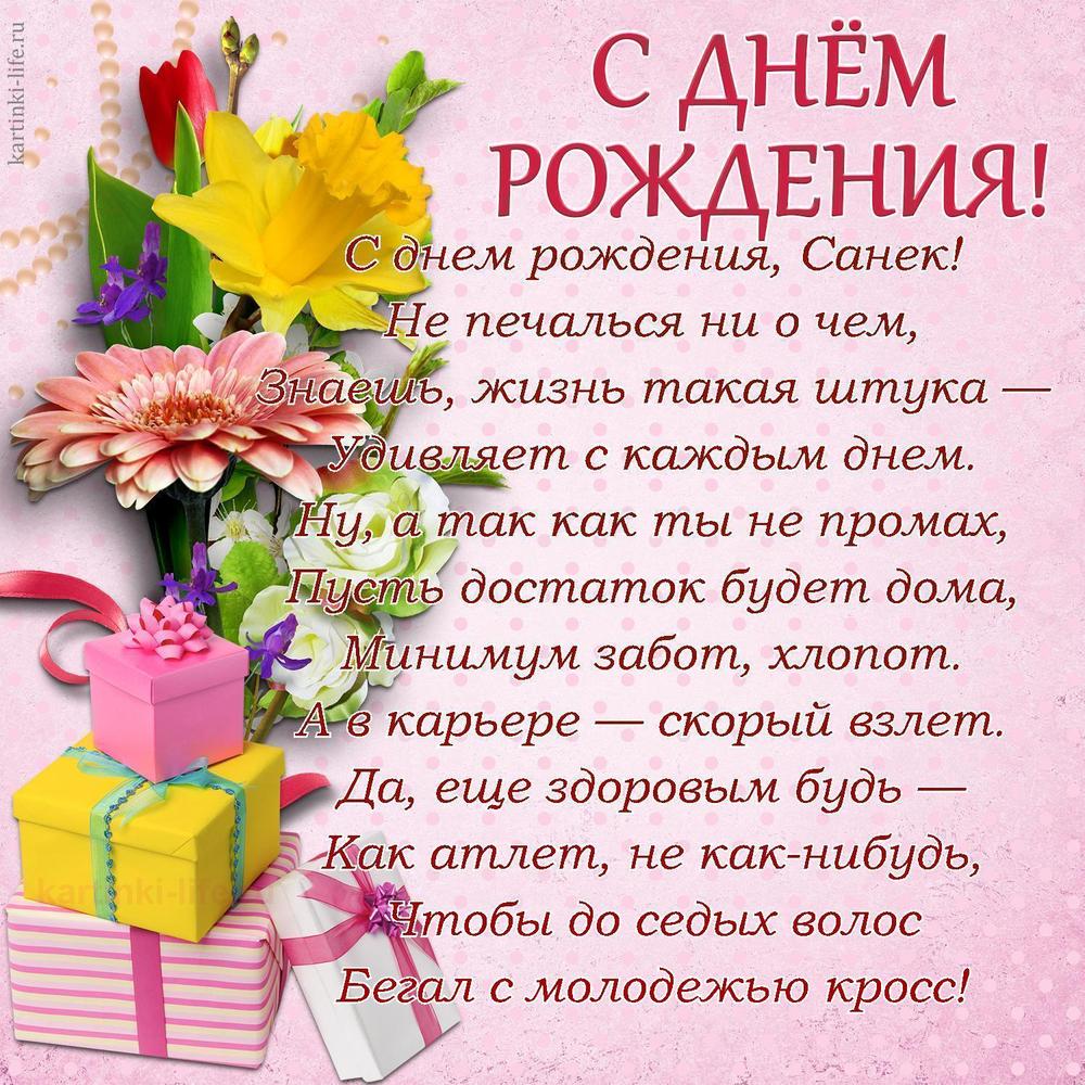 ← Предыдущая ГОЛОСОВЫЕСледующая → Выберите и нажмите! Другие варианты открыток с этим текстом Скачать Скачать Скачать Скачать Скачать Скачать Скачать Скачать Скачать Скачать Скачать Скачать Скачать Скачать Скачать СкачатьАлександр. Открытки С Днем рождения по именам. Поздравления. РЕКОМЕНДОВАНО К ПРОСМОТРУ Именная открытка с днем рождения АлександрОТКРЫТЬСКАЧАТЬ Короткое поздравление. Александр с днем рождения тебя. [Поздравления Александру с днем рождения, мужчине]ОТКРЫТЬСКАЧАТЬ Гиф Саша! С днем рождения!ОТКРЫТЬСКАЧАТЬ Зайка. Яркое поздравление Александра с Днем Рождения. [Поздравления Александру с днем рождения, мужчине]ОТКРЫТЬСКАЧАТЬ Именные открытки Александру с Днем рождения, мужчине. Пожелание в стихах, кот и собака.ОТКРЫТЬСКАЧАТЬ Именные открытки Александру с Днем рождения, мужчине. Все девушки с конкурсов красоты твои, Саня!ОТКРЫТЬСКАЧАТЬ Поздравление с днем рождения Саше. Открытки с именами. С Днем Рожденья Александр!ОТКРЫТЬСКАЧАТЬ Сашуля! С днем рождения! Гифка!ОТКРЫТЬСКАЧАТЬ Картинка с днем рождения для СашиОТКРЫТЬСКАЧАТЬ Прикольная открытка с днем рождения СаняОТКРЫТЬСКАЧАТЬ Открытки С Днем рождения по именам Открытки С Днем рождения по категориям Продолжить просмотр Поздравление с Днем рождения Александру в стихах мужчине. С днем рождения, Санек! Не печалься ни о чем, Знаешь, жизнь такая