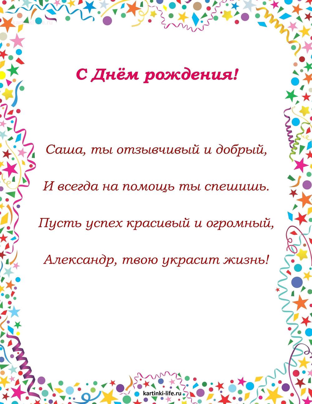 ← Предыдущая ГОЛОСОВЫЕСледующая → Выберите и нажмите! Другие варианты открыток с этим текстом Скачать Скачать Скачать Скачать Скачать Скачать Скачать Скачать Скачать Скачать Скачать Скачать Скачать Скачать Скачать СкачатьАлександр. Открытки С Днем рождения по именам. Поздравления. пока 0оставить комментарий РЕКОМЕНДОВАНО К ПРОСМОТРУ Поздравление Александру на фоне морского днаОТКРЫТЬСКАЧАТЬ Именные открытки Александру с Днем рождения, мужчине. Пожелание в стихах, кот и собака.ОТКРЫТЬСКАЧАТЬ Картинка Саше на 1 годикОТКРЫТЬСКАЧАТЬ Прикольная картинка Санька с днем рожденияОТКРЫТЬСКАЧАТЬ С Днем Рождения Александр! Трогательное поздравление. [Поздравления Александру с днем рождения, мужчине]ОТКРЫТЬСКАЧАТЬ Именные открытки Александру с Днем рождения, мужчине. Пожелание, икра, цветы, доллары.ОТКРЫТЬСКАЧАТЬ Картинка с днем рождения для СашиОТКРЫТЬСКАЧАТЬ Открытка с днем рождения АлександрОТКРЫТЬСКАЧАТЬ Классная анимационная открытка с днем рождения Санек с шампанским!ОТКРЫТЬСКАЧАТЬ Музыкальное видео-поздравление. С Днем рождения, Александр!. [Поздравления Александру с днем рождения, мужчине]ОТКРЫТЬСКАЧАТЬ Открытки С Днем рождения по именам Открытки С Днем рождения по категориям Продолжить просмотр Поздравление с Днем рождения Александру в стихах мужчине. Саша, ты отзывчивый и добрый, И всегда на помощь ты спешишь. Пусть