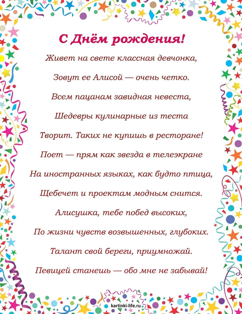 ← Предыдущая ГОЛОСОВЫЕСледующая → Выберите и нажмите! Другие варианты открыток с этим текстом Скачать Скачать Скачать Скачать Скачать Скачать Скачать Скачать Скачать Скачать Скачать Скачать Скачать Скачать Скачать СкачатьАлиса. Открытки С Днем рождения по именам. Поздравления. пока 0оставить комментарий РЕКОМЕНДОВАНО К ПРОСМОТРУ Именные открытки с Днем рождения для Алисы. Своими словами поздравление с Днем рождения скачать.ОТКРЫТЬСКАЧАТЬ Картинка с днем рождения АлискаОТКРЫТЬСКАЧАТЬ Анимационная гиф открытка с днем рождения Алиса с синей розой!ОТКРЫТЬСКАЧАТЬ Открытка Алисе с цветами, бабочкой и поздравлениемОТКРЫТЬСКАЧАТЬ Гифка АлисаОТКРЫТЬСКАЧАТЬ Открытка Алисе на День рождения с букетом роз и подаркомОТКРЫТЬСКАЧАТЬ Мерцающая gif открытка с днем рождения Алиса!ОТКРЫТЬСКАЧАТЬ Красивая анимация с днем рождения Алиса!ОТКРЫТЬСКАЧАТЬ Яркая картинка с розовыми розочками и поздравлением АлисеОТКРЫТЬСКАЧАТЬ С днем рождения, дорогая Алиса! Красивое и веселое поздравление!. [Поздравления Алисе с днем рождения]ОТКРЫТЬСКАЧАТЬ Открытки С Днем рождения по именам Открытки С Днем рождения по категориям Поздравление с Днем рождения Алисе в стихах. Живет на свете классная девчонка, Зовут ее Алисой — очень четко. Всем пацанам