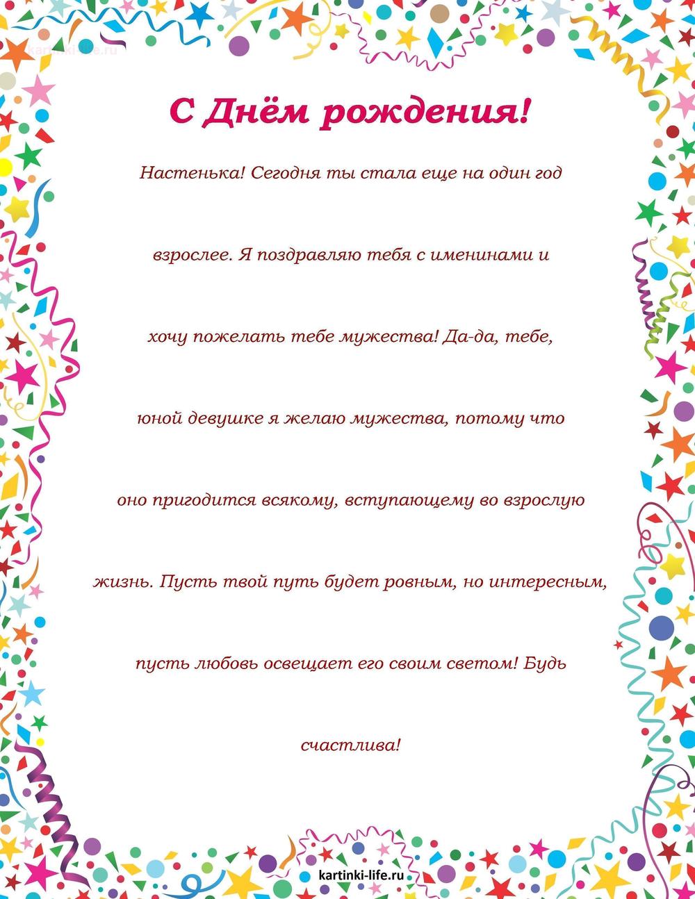 ← Предыдущая ГОЛОСОВЫЕСледующая → Выберите и нажмите! Другие варианты открыток с этим текстом Скачать Скачать Скачать Скачать Скачать Скачать Скачать Скачать Скачать Скачать Скачать Скачать Скачать Скачать Скачать СкачатьАнастасия. Открытки С Днем рождения по именам. Поздравления. пока 0оставить комментарий РЕКОМЕНДОВАНО К ПРОСМОТРУ Яркое поздравление. С ДНЕМ РОЖДЕНИЯ, НАСТЕНЬКА!!!. [Поздравления Анастасия Настя Настенька Настюша Настасья с днем рождения]ОТКРЫТЬСКАЧАТЬ Именные открытки с Днем рождения Анастасия. С юмором с Днем рождения.ОТКРЫТЬСКАЧАТЬ Именная открытка с днем рождения для НастиОТКРЫТЬСКАЧАТЬ Зайка Поздравление Насте С Днем Рождения ! Трогательное поздравление. [Поздравления Анастасия Настя Настенька Настюша Настасья с днем рождения]ОТКРЫТЬСКАЧАТЬ Именные открытки с Днем рождения Анастасия. Душевное поздравление на телефон с Днем рождения скачать на телефон.ОТКРЫТЬСКАЧАТЬ Красивая открытка с днем рождения АнастасииОТКРЫТЬСКАЧАТЬ Яркое поздравление. С Днем рождения, Настя!. [Поздравления Анастасия Настя Настенька Настюша Настасья с днем рождения]ОТКРЫТЬСКАЧАТЬ Картинка с днем рождения для НастюшиОТКРЫТЬСКАЧАТЬ С Днем Ангела Анастасия Красивое Поздравление Для Насти. 4 Января День Ангела Анастасии. [Поздравления Анастасия Настя Настенька Настюша Настасья с днем рождения]ОТКРЫТЬСКАЧАТЬ Картинка Насте на 4 годаОТКРЫТЬСКАЧАТЬ Открытки С Днем рождения по именам Открытки С Днем рождения по категориям Продолжить просмотр Поздравление с Днем рождения Анастасии в прозе. Настенька! Сегодня ты стала еще на один год взрослее. Я поздравляю тебя с