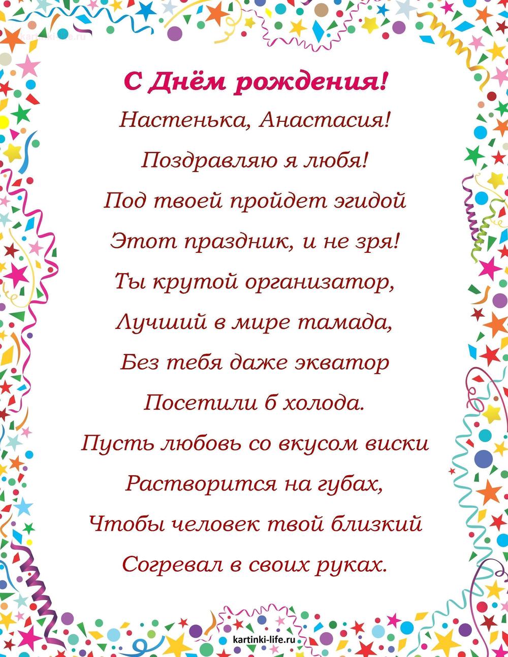 ← Предыдущая ГОЛОСОВЫЕСледующая → Выберите и нажмите! Другие варианты открыток с этим текстом Скачать Скачать Скачать Скачать Скачать Скачать Скачать Скачать Скачать Скачать Скачать Скачать Скачать Скачать Скачать СкачатьАнастасия. Открытки С Днем рождения по именам. Поздравления. пока 0оставить комментарий РЕКОМЕНДОВАНО К ПРОСМОТРУ Картинка Насте на 1 годикОТКРЫТЬСКАЧАТЬ Зайка Поздравление Насте С Днем Рождения ! Трогательное поздравление. [Поздравления Анастасия Настя Настенька Настюша Настасья с днем рождения]ОТКРЫТЬСКАЧАТЬ Букет ландышей на День Рождения НастеОТКРЫТЬСКАЧАТЬ Красивая анимированная открытка с днем рождения Анастасия!ОТКРЫТЬСКАЧАТЬ Яркое поздравление. С Днем Рождения, Настя!. [Поздравления Анастасия Настя Настенька Настюша Настасья с днем рождения]ОТКРЫТЬСКАЧАТЬ Гиф открытка с днем рождения Анастасия с букетом роз и тортом!ОТКРЫТЬСКАЧАТЬ Именные открытки с Днем рождения Анастасия. Отправить на смартфон с Днем рождения скачать на смартфон.ОТКРЫТЬСКАЧАТЬ Открытка на день рождения Анастасии - поздравление в оформлении из цветовОТКРЫТЬСКАЧАТЬ Гифка с днем рождения Анастасия с розой!ОТКРЫТЬСКАЧАТЬ Открытка, картинка, с днем рождения, день рождения, Настя. Открытки Открытка, картинка, с днем рождения, день рождения, Настя, Анастасия.ОТКРЫТЬСКАЧАТЬ Открытки С Днем рождения по именам Открытки С Днем рождения по категориям Продолжить просмотр Поздравление с Днем рождения Анастасии в стихах. Настенька, Анастасия! Поздравляю я любя! Под твоей пройдет эгидой Этот праздник,
