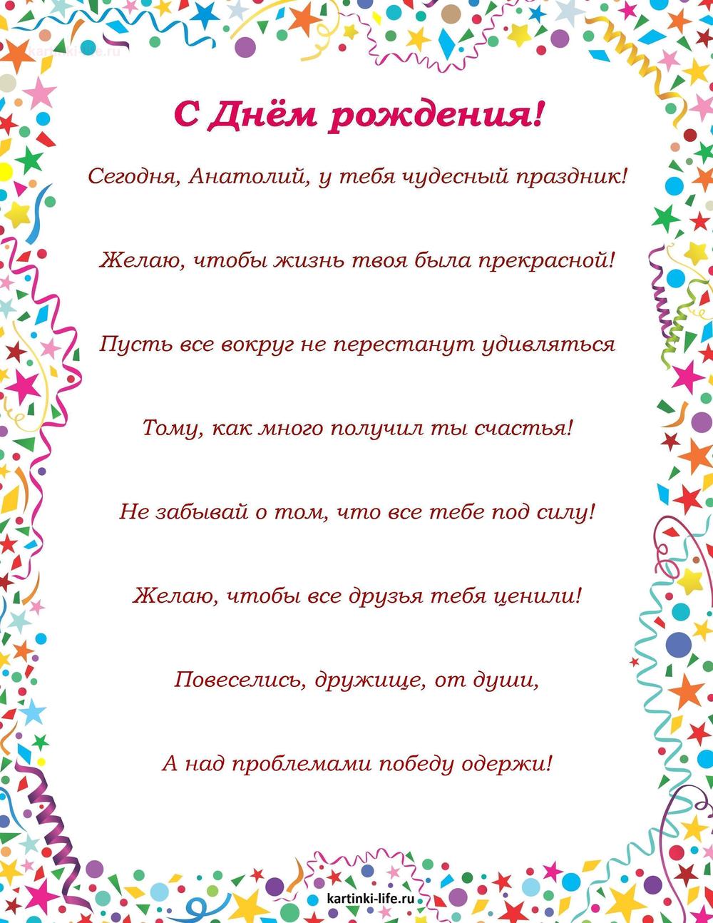 ← Предыдущая ГОЛОСОВЫЕСледующая → Выберите и нажмите! Другие варианты открыток с этим текстом Скачать Скачать Скачать Скачать Скачать Скачать Скачать Скачать Скачать Скачать Скачать Скачать Скачать Скачать Скачать СкачатьАнатолий. Открытки С Днем рождения по именам. Поздравления. пока 0оставить комментарий РЕКОМЕНДОВАНО К ПРОСМОТРУ Именные открытки с Днем рождения Анатолий. Картинка с Днем рождения скачать на смартфон.ОТКРЫТЬСКАЧАТЬ Толя, с Днем Рождения ПОЗДРАВЛЯЮ!. [Поздравления Анатолий Толя Толик Толян с днем рождения]ОТКРЫТЬСКАЧАТЬ Открытка с днем рождения для ТоликаОТКРЫТЬСКАЧАТЬ Поздравляем Анатолия с днем рождения - Видео Открытка. [Поздравления Анатолий Толя Толик Толян с днем рождения]ОТКРЫТЬСКАЧАТЬ Именные открытки с Днем рождения Анатолий. Картинка с приколом с Днем рождения скачать на смартфон.ОТКРЫТЬСКАЧАТЬ Красивая анимированная картинка с днем рождения Анатолий с природой!ОТКРЫТЬСКАЧАТЬ Именные открытки с Днем рождения Анатолий. Открытка на Днем рождения скачать.ОТКРЫТЬСКАЧАТЬ Открытка с днем рождения дядя ТоляОТКРЫТЬСКАЧАТЬ Именные открытки с Днем рождения Анатолий. Душевное поздравление с Днем рождения.ОТКРЫТЬСКАЧАТЬ С днем рождения Анатолий. Самые искренние пожелания под красивую песню Брат - с днем рождения. [Поздравления Анатолий Толя Толик Толян с днем рождения]ОТКРЫТЬСКАЧАТЬ Открытки С Днем рождения по именам Открытки С Днем рождения по категориям Продолжить просмотр Поздравление с Днем рождения Анатолию в стихах. Сегодня, Анатолий, у тебя чудесный праздник! Желаю, чтобы жизнь твоя была
