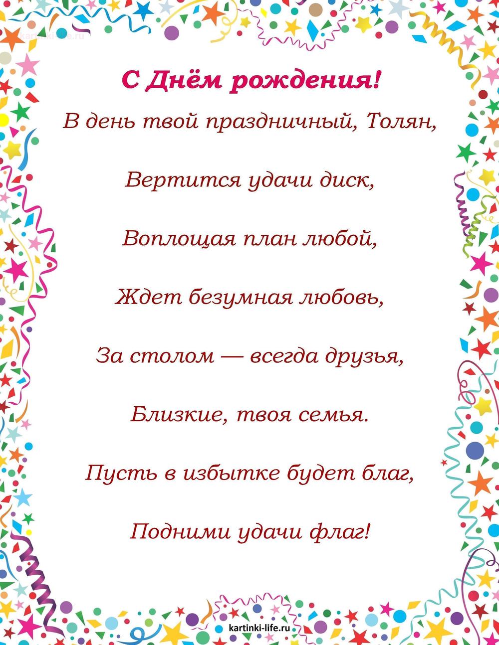 ← Предыдущая ГОЛОСОВЫЕСледующая → Выберите и нажмите! Другие варианты открыток с этим текстом Скачать Скачать Скачать Скачать Скачать Скачать Скачать Скачать Скачать Скачать Скачать Скачать Скачать Скачать Скачать СкачатьАнатолий. Открытки С Днем рождения по именам. Поздравления. пока 0оставить комментарий РЕКОМЕНДОВАНО К ПРОСМОТРУ Именные открытки с Днем рождения Анатолий. Красивое поздравление.ОТКРЫТЬСКАЧАТЬ С Днем рождения, Анатолий! Красивое видео поздравление Анатолию, музыкальная открытка, плейкаст. [Поздравления Анатолий Толя Толик Толян с днем рождения]ОТКРЫТЬСКАЧАТЬ Яркое поздравление. С ДНЕМ РОЖДЕНИЯ, ТОЛИК!. [Поздравления Анатолий Толя Толик Толян с днем рождения]ОТКРЫТЬСКАЧАТЬ С Днем Рождения Анатолий! Яркое и трогательное поздравление. [Поздравления Анатолий Толя Толик Толян с днем рождения]ОТКРЫТЬСКАЧАТЬ Анатолий - день ангела и именины Анатолия красивые поздравления и пожелания Анатолию. Яркое поздравление. [Поздравления Анатолий Толя Толик Толян с днем рождения]ОТКРЫТЬСКАЧАТЬ Именные открытки с Днем рождения Анатолий. Открытка скачать на телефон с Днем рождения.ОТКРЫТЬСКАЧАТЬ Именные открытки с Днем рождения Анатолий. Поздравление с приколом с Днем рождения скачать на мобильный.ОТКРЫТЬСКАЧАТЬ Анатолий, с днем рождения! Открытка со стихами другу.. [Поздравления Анатолий Толя Толик Толян с днем рождения]ОТКРЫТЬСКАЧАТЬ Именные открытки с Днем рождения Анатолий. Душевное поздравление с Днем рождения скачать на смартфон.ОТКРЫТЬСКАЧАТЬ Картинка с деньгами и розами на День рождения АнатолиюОТКРЫТЬСКАЧАТЬ Открытки С Днем рождения по именам Открытки С Днем рождения по категориям Продолжить просмотр Поздравление с Днем рождения Анатолию в стихах. В день твой праздничный, Толян, Вертится удачи диск, Воплощая план любой,