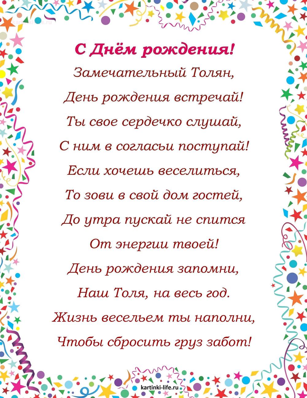 ← Предыдущая ГОЛОСОВЫЕСледующая → Выберите и нажмите! Другие варианты открыток с этим текстом Скачать Скачать Скачать Скачать Скачать Скачать Скачать Скачать Скачать Скачать Скачать Скачать Скачать Скачать Скачать СкачатьАнатолий. Открытки С Днем рождения по именам. Поздравления. пока 0оставить комментарий РЕКОМЕНДОВАНО К ПРОСМОТРУ Именные открытки с Днем рождения Анатолий. Поздравление с приколом с Днем рождения скачать на мобильный.ОТКРЫТЬСКАЧАТЬ Картинка с машиной в горах на День рождения АнатолиюОТКРЫТЬСКАЧАТЬ Именные открытки с Днем рождения Анатолий. Лучшая картинка с Днем рождениям.ОТКРЫТЬСКАЧАТЬ Мерцающая гифка с днем рождения Анатолий!ОТКРЫТЬСКАЧАТЬ Песни с именами- Песня про Толю Анатолия - С Днем рождения Анатолий. [Поздравления Анатолий Толя Толик Толян с днем рождения]ОТКРЫТЬСКАЧАТЬ С Днем Рождения Анатолий! музыкальные видео поздравления. [Поздравления Анатолий Толя Толик Толян с днем рождения]ОТКРЫТЬСКАЧАТЬ Анатолий С Днем рождения. Поздравляю, Анатолий. Желаю в твоей жизни красивых историй. [Поздравления Анатолий Толя Толик Толян с днем рождения]ОТКРЫТЬСКАЧАТЬ Именные открытки с Днем рождения Анатолий. Картинка с Днем рождения.ОТКРЫТЬСКАЧАТЬ С днем рождения, Толик! Поздравление другу автомобилисту.. [Поздравления Анатолий Толя Толик Толян с днем рождения]ОТКРЫТЬСКАЧАТЬ Именные открытки с Днем рождения Анатолий. Открытка красивая.ОТКРЫТЬСКАЧАТЬ Открытки С Днем рождения по именам Открытки С Днем рождения по категориям Продолжить просмотр Поздравление с Днем рождения Анатолию в стихах. Замечательный Толян, День рождения встречай! Ты свое сердечко слушай, С ним