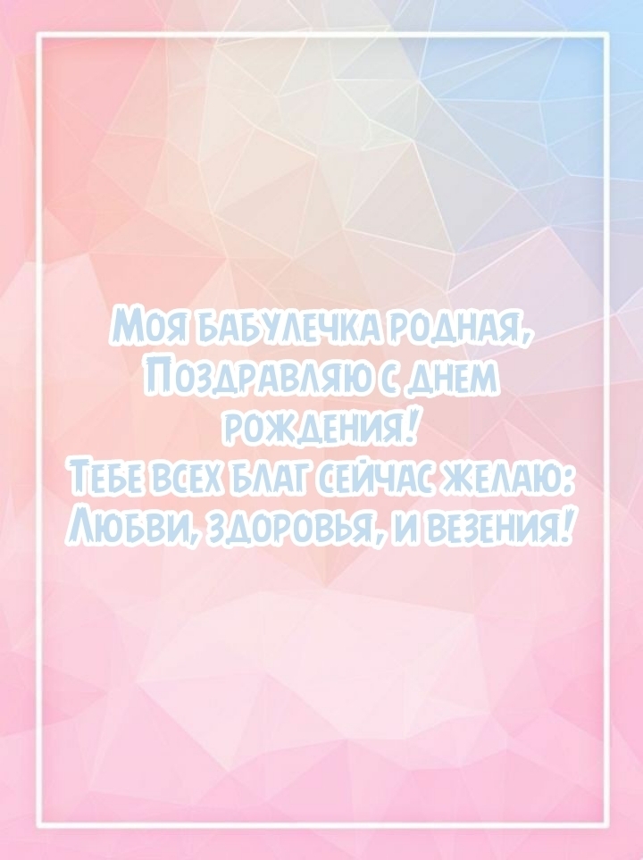 ← Предыдущая ГОЛОСОВЫЕСледующая → Выберите и нажмите! Другие варианты открыток с этим текстом Скачать Скачать Скачать Скачать Скачать Скачать Скачать Скачать Скачать Скачать Скачать Скачать Скачать Скачать Скачать СкачатьБабушке. Открытки С Днем рождения. Поздравления. пока 0оставить комментарий РЕКОМЕНДОВАНО К ПРОСМОТРУ Бабушка моя родная, с днем рождения тебя от души я поздравляюОТКРЫТЬСКАЧАТЬ Бабулечка, любимая, с днем рождения милая.ОТКРЫТЬСКАЧАТЬ Бабушка Милая, с Днем Рождения! Знай-Ты лучшая!ОТКРЫТЬСКАЧАТЬ Бабулечка, любимая, тебя я поздравляюОТКРЫТЬСКАЧАТЬ Бабуля моя милая, я знаю, ты всех бабуль прекрасней на земле!ОТКРЫТЬСКАЧАТЬ Моя бабулечка родная, поздравляю с днем рождения!ОТКРЫТЬСКАЧАТЬ Бабуля милая моя, я поздравляю с днем рожденьяОТКРЫТЬСКАЧАТЬ Бабушка, с днем рождения!ОТКРЫТЬСКАЧАТЬ Пожелание на день Рождения в стихах Открытки с Днем Рождения. Красивое пожелание на день рождения.ОТКРЫТЬСКАЧАТЬ Тебе, мой человек родной! С днем рождения, бабушка!ОТКРЫТЬСКАЧАТЬ Открытки С Днем рождения по именам Открытки С Днем рождения по категориям Продолжить просмотр Поздравление с днем рождения для бабушки. Вся жизнь - как в сериале, но без вымысла.