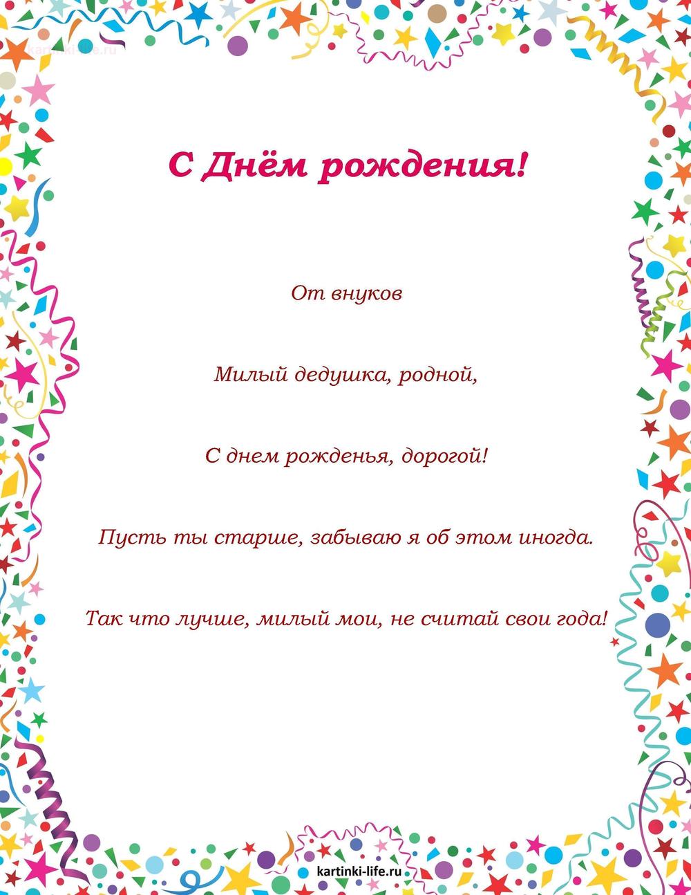 ← Предыдущая ГОЛОСОВЫЕСледующая → Выберите и нажмите! Другие варианты открыток с этим текстом Скачать Скачать Скачать Скачать Скачать Скачать Скачать Скачать Скачать Скачать Скачать Скачать Скачать Скачать Скачать СкачатьДедушке. Открытки С Днем рождения. Поздравления. РЕКОМЕНДОВАНО К ПРОСМОТРУ С днем рождения, дедуля! Будь здоровым навсегда.ОТКРЫТЬСКАЧАТЬ С днем рождения, дорогой, милый дедушка, родной!ОТКРЫТЬСКАЧАТЬ Открытка, поздравление с днем рождения для дедушкиОТКРЫТЬСКАЧАТЬ С Днем Рождения, Дедуля! Будь здоровым навсегда.ОТКРЫТЬСКАЧАТЬ Поздравляю с днем рождения, Дедушка, мой дорогой.ОТКРЫТЬСКАЧАТЬ Дедушка, с Твоим Днем!ОТКРЫТЬСКАЧАТЬ Красивая открытка с днем рождения для дедушки. Пожилой крепкий рыбак с удочкой на берегу реки. Горы, лес.ОТКРЫТЬСКАЧАТЬ С Днем Рожденья, Дедушка! С праздником, родной.ОТКРЫТЬСКАЧАТЬ Любимый дед, я желаю, чтоб ты никогда не знал бед!ОТКРЫТЬСКАЧАТЬ [С днем рождения родным] открытки [дедушке]. С юмором с Днем рождения скачать на мобильный.ОТКРЫТЬСКАЧАТЬ Открытки С Днем рождения по именам Открытки С Днем рождения по категориям Продолжить просмотр Поздравление с днем рождения для дедушки. Милый дедушка, родной.