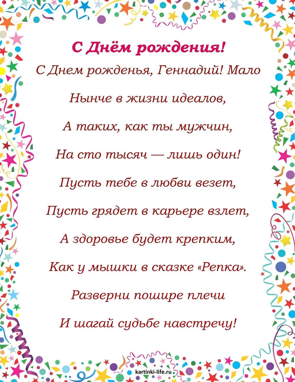 ← Предыдущая ГОЛОСОВЫЕСледующая → Выберите и нажмите! Другие варианты открыток с этим текстом Скачать Скачать Скачать Скачать Скачать Скачать Скачать Скачать Скачать Скачать Скачать Скачать Скачать Скачать Скачать СкачатьГеннадий. Открытки С Днем рождения по именам. Поздравления. пока 0оставить комментарий РЕКОМЕНДОВАНО К ПРОСМОТРУ Путин поздравляет Геннадия с днем рождения - желаю тебе душевной молодостиОТКРЫТЬСКАЧАТЬ Картинка с днем рождения ГеннадийОТКРЫТЬСКАЧАТЬ Gif картинка с днем рождения дорогой ГеннадийОТКРЫТЬСКАЧАТЬ С Днем Рождения Геннадий. Анимационное поздравление. [Геннадий, с днем рождения. Видеооткрытка]ОТКРЫТЬСКАЧАТЬ С днем рождения, Геннадий. Яркое поздравление. [Геннадий, с днем рождения. Видеооткрытка]ОТКРЫТЬСКАЧАТЬ Именные открытки с Днем рождения Геннадий. Красивые слова с Днем рождения скачать на мобильный.ОТКРЫТЬСКАЧАТЬ [С днем рождения] открытки [мужские имена] [Геннадий]. Открытка на День рождения скачать на телефон.ОТКРЫТЬСКАЧАТЬ Гифка с днем рождения тебя Гена!ОТКРЫТЬСКАЧАТЬ Именные открытки с Днем рождения Геннадий. Прикольное поздравление с Днем рождения.ОТКРЫТЬСКАЧАТЬ Картинка с деньгами и розами на День рождения ГеннадиюОТКРЫТЬСКАЧАТЬ Открытки С Днем рождения по именам Открытки С Днем рождения по категориям Поздравление с Днем рождения Геннадию в стихах. С Днем рожденья, Геннадий! Мало Нынче в жизни идеалов, А таких, как ты мужчин,