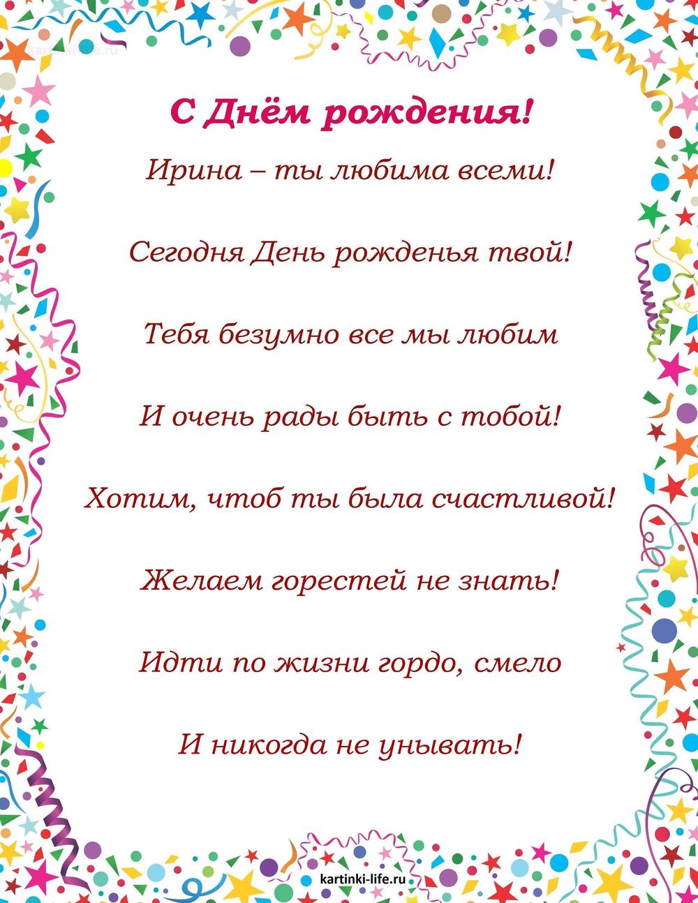 ← Предыдущая ГОЛОСОВЫЕСледующая → Выберите и нажмите! Другие варианты открыток с этим текстом Скачать Скачать Скачать Скачать Скачать Скачать Скачать Скачать Скачать Скачать Скачать Скачать Скачать Скачать Скачать СкачатьИрина. Открытки С Днем рождения по именам. Поздравления. РЕКОМЕНДОВАНО К ПРОСМОТРУ Gif анимация с днем рождения Ира!ОТКРЫТЬСКАЧАТЬ Открытка с Днем рождения Ирине - шампанское с подарком и цветамиОТКРЫТЬСКАЧАТЬ Именные открытки с Днем рождения Ирине, Ире. Душевное поздравление на мобильный с Днем рождения скачать.ОТКРЫТЬСКАЧАТЬ Именные открытки с Днем рождения Ирине. На мобильный скачать открытку.ОТКРЫТЬСКАЧАТЬ открытка - красивые белые цветы Ирише на День РожденияОТКРЫТЬСКАЧАТЬ 1001 роза для Ирины! Ирочка, ты самая лучшая! - Музыкальная открытка. [Ирина, с днем рождения. Видеооткрытка]ОТКРЫТЬСКАЧАТЬ Дорогая Ирина! Поздравляю тебя с Днем рождения!. [Ирина, с днем рождения. Видеооткрытка]ОТКРЫТЬСКАЧАТЬ С Днем рождения, Ирина! Музыкальная открытка. [Ирина, с днем рождения. Видеооткрытка]ОТКРЫТЬСКАЧАТЬ Открытка с днем рождения Ирина с пожеланиемОТКРЫТЬСКАЧАТЬ [С днем рождения] открытки [женские имена] [Ирина Ира]. Прикольное поздравление с Днем рождения.ОТКРЫТЬСКАЧАТЬ Открытки С Днем рождения по именам Открытки С Днем рождения по категориям Продолжить просмотр Поздравление с Днем рождения Ирине в стихах. Ирина – ты любима всеми! Сегодня День рожденья твой! Тебя безумно все мы любим