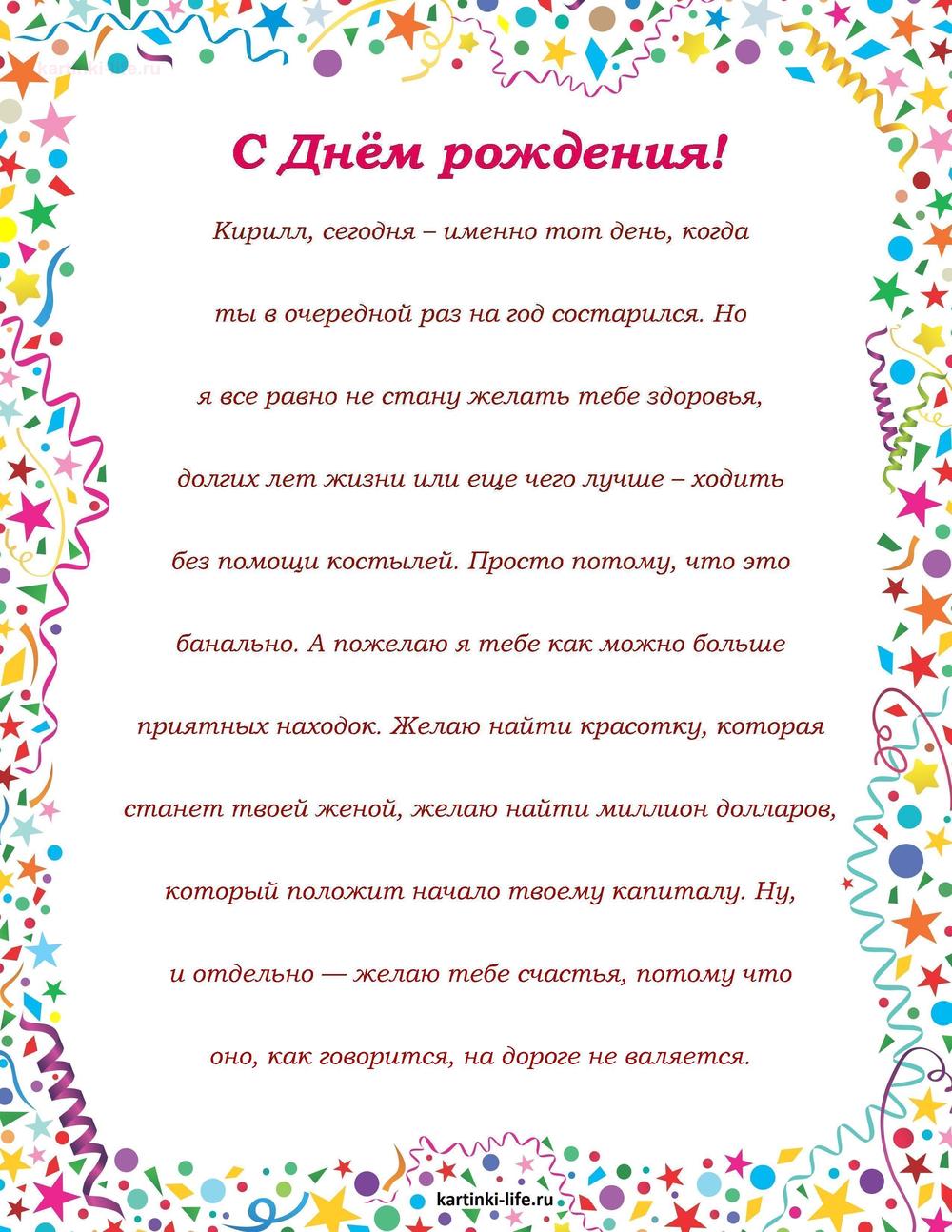 ← Предыдущая ГОЛОСОВЫЕСледующая → Выберите и нажмите! Другие варианты открыток с этим текстом Скачать Скачать Скачать Скачать Скачать Скачать Скачать Скачать Скачать Скачать Скачать Скачать Скачать Скачать Скачать СкачатьКирилл. Открытки С Днем рождения по именам. Поздравления. пока 0оставить комментарий РЕКОМЕНДОВАНО К ПРОСМОТРУ Именные открытки с Днем рождения Кирилл. Своими словами поздравление с Днем рождения скачать.ОТКРЫТЬСКАЧАТЬ Гифка с днем рождения Кирилл!ОТКРЫТЬСКАЧАТЬ открытка - стодолларовые купюры для КириллаОТКРЫТЬСКАЧАТЬ Прикольная открытка с днем рождения мужчине КириллуОТКРЫТЬСКАЧАТЬ Именные открытки с Днем рождения Кирилл. Бесплатно поздравление с днем рождения.ОТКРЫТЬСКАЧАТЬ Именные открытки с Днем рождения Кирилл. С приколом с Днем рождения скачать.ОТКРЫТЬСКАЧАТЬ Прекрасная открытка с днем рождения КириллОТКРЫТЬСКАЧАТЬ Красивая открытка с днем рождения КириллуОТКРЫТЬСКАЧАТЬ Открытка - поздравление Кирилла с днюхой на фоне ночного городаОТКРЫТЬСКАЧАТЬ Картинка с поздравлением с днем рождения КириллуОТКРЫТЬСКАЧАТЬ Открытки С Днем рождения по именам Открытки С Днем рождения по категориям Продолжить просмотр Поздравление с Днем рождения Кириллу в прозе. Кирилл, сегодня – именно тот день, когда ты в очередной раз на год состарился.