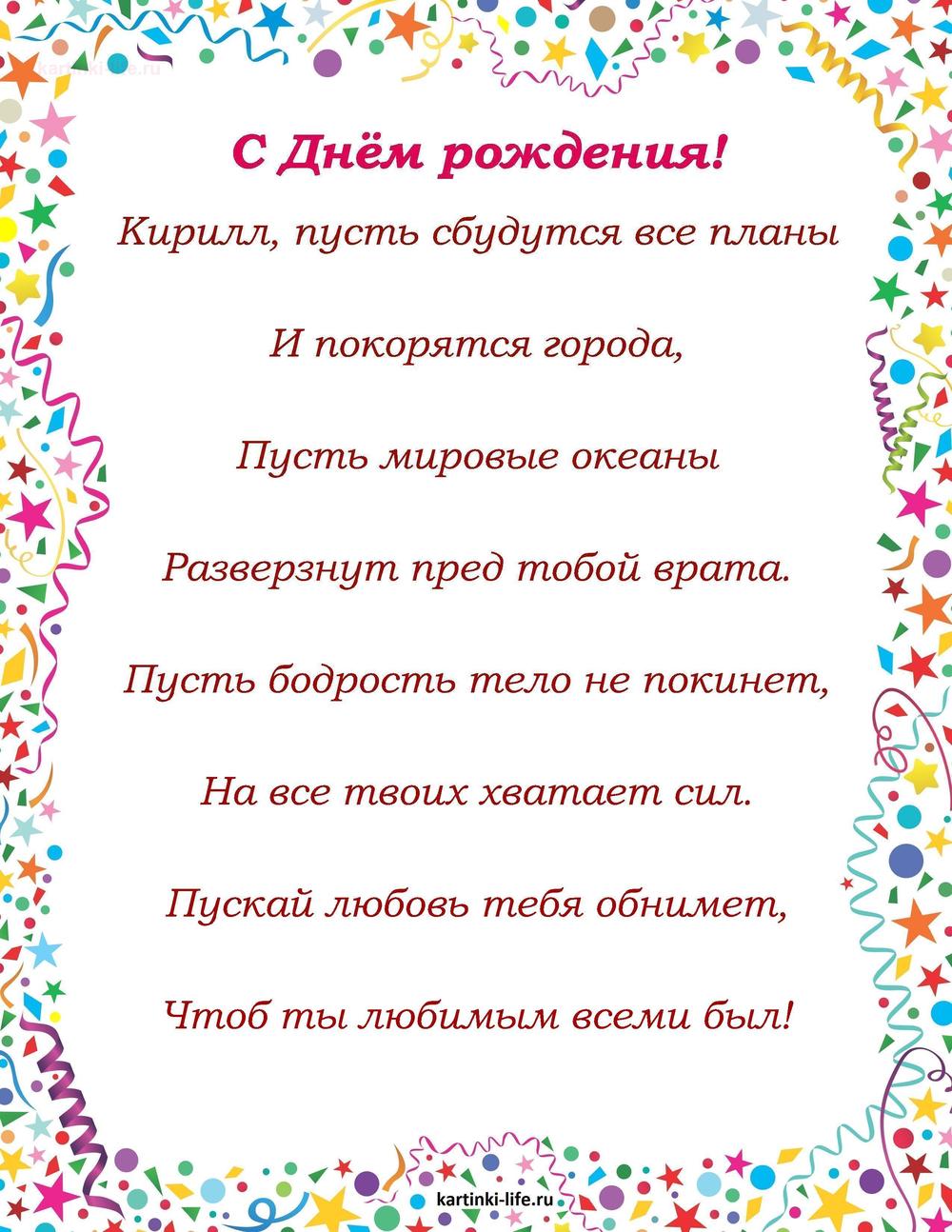 ← Предыдущая ГОЛОСОВЫЕСледующая → Выберите и нажмите! Другие варианты открыток с этим текстом Скачать Скачать Скачать Скачать Скачать Скачать Скачать Скачать Скачать Скачать Скачать Скачать Скачать Скачать Скачать СкачатьКирилл. Открытки С Днем рождения по именам. Поздравления. пока 0оставить комментарий РЕКОМЕНДОВАНО К ПРОСМОТРУ Именные открытки с Днем рождения Кирилл. С приколом с Днем рождения скачать.ОТКРЫТЬСКАЧАТЬ Картинка на день рождения КириллаОТКРЫТЬСКАЧАТЬ Картинка с поздравлением с днем рождения для КириллаОТКРЫТЬСКАЧАТЬ Gif картинка поздравляем Кирюшу с днем рожденияОТКРЫТЬСКАЧАТЬ Прикольная картинка Кирилл с днем рожденияОТКРЫТЬСКАЧАТЬ Картинка с поздравлением с днем рождения КириллОТКРЫТЬСКАЧАТЬ Открытка на День рождения Кириллу с шампанскимОТКРЫТЬСКАЧАТЬ Картинка с днем рождения Кирилл БорисовичОТКРЫТЬСКАЧАТЬ Картинка на День рождения Кириллу с девушкой в тортикеОТКРЫТЬСКАЧАТЬ Картинка с днем рождения с именем КириллОТКРЫТЬСКАЧАТЬ Открытки С Днем рождения по именам Открытки С Днем рождения по категориям Продолжить просмотр Поздравление с Днем рождения Кириллу в стихах. Кирилл, пусть сбудутся все планы И покорятся города, Пусть мировые океаны