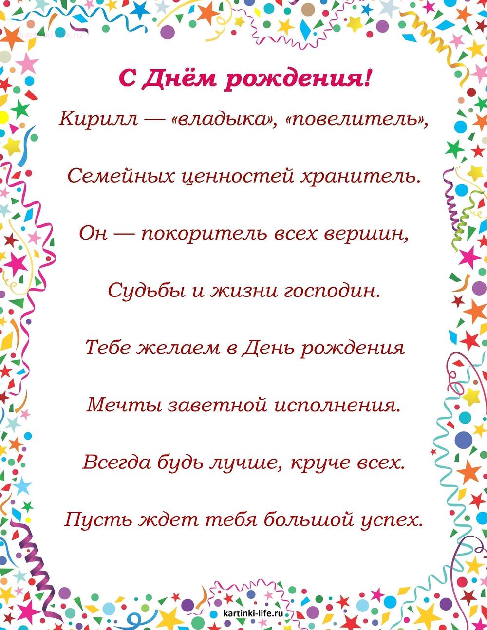 ← Предыдущая ГОЛОСОВЫЕСледующая → Выберите и нажмите! Другие варианты открыток с этим текстом Скачать Скачать Скачать Скачать Скачать Скачать Скачать Скачать Скачать Скачать Скачать Скачать Скачать Скачать Скачать СкачатьКирилл. Открытки С Днем рождения по именам. Поздравления. РЕКОМЕНДОВАНО К ПРОСМОТРУ Именные открытки с Днем рождения Кирилл. Бесплатно картинка.ОТКРЫТЬСКАЧАТЬ Открытка с днем рождения Кирилл. Открытка на день рождения - цветочки и душевное пожелание мира и любви Кириллу.ОТКРЫТЬСКАЧАТЬ Открытка - поздравление Кирилла с днюхой на фоне ночного городаОТКРЫТЬСКАЧАТЬ Именные открытки с Днем рождения Кирилл. Прикольнейшее поздравление с днем рождения.ОТКРЫТЬСКАЧАТЬ Открытка с днем рождения Кириллу мальчикуОТКРЫТЬСКАЧАТЬ Именные открытки с Днем рождения Кирилл. Своими словами поздравление с Днем рождения.ОТКРЫТЬСКАЧАТЬ Картинка Кириллу на 10 летОТКРЫТЬСКАЧАТЬ Красивая открытка с днем рождения КириллОТКРЫТЬСКАЧАТЬ Картинка Кириллу на 3 годаОТКРЫТЬСКАЧАТЬ Открытка на День рождения Кириллу с шампанскимОТКРЫТЬСКАЧАТЬ Открытки С Днем рождения по именам Открытки С Днем рождения по категориям Продолжить просмотр Поздравление с Днем рождения Кириллу в стихах. Кирилл — «владыка», «повелитель», Семейных ценностей хранитель. Он — покоритель