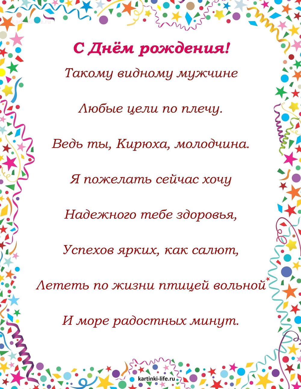 ← Предыдущая ГОЛОСОВЫЕСледующая → Выберите и нажмите! Другие варианты открыток с этим текстом Скачать Скачать Скачать Скачать Скачать Скачать Скачать Скачать Скачать Скачать Скачать Скачать Скачать Скачать Скачать СкачатьКирилл. Открытки С Днем рождения по именам. Поздравления. РЕКОМЕНДОВАНО К ПРОСМОТРУ Поздравление с днем рождения Кириллу в картинкеОТКРЫТЬСКАЧАТЬ Картинка Кирюха с днюхойОТКРЫТЬСКАЧАТЬ Открытка с днем рождения для КириллаОТКРЫТЬСКАЧАТЬ Именные открытки с Днем рождения Кирилл. Красивая открытка с Днем рождения скачать.ОТКРЫТЬСКАЧАТЬ Именные открытки с Днем рождения Кирилл. Прикольнейшее поздравление с днем рождения скачать на смартфон.ОТКРЫТЬСКАЧАТЬ Именные открытки с Днем рождения Кирилл. Своими словами поздравление с Днем рождения скачать.ОТКРЫТЬСКАЧАТЬ Картинка на День рождения Кириллу с котиком на колбасеОТКРЫТЬСКАЧАТЬ Именные открытки с Днем рождения Кирилл. Трогательное поздравление с Днем рождения.ОТКРЫТЬСКАЧАТЬ Бесплатная открытка с днем рождения для КириллаОТКРЫТЬСКАЧАТЬ Картинка счастливого дня рождения КириллОТКРЫТЬСКАЧАТЬ Открытки С Днем рождения по именам Открытки С Днем рождения по категориям Продолжить просмотр Поздравление с Днем рождения Кириллу в стихах. Такому видному мужчине Любые цели по плечу. Ведь ты, Кирюха, молодчина. Я
