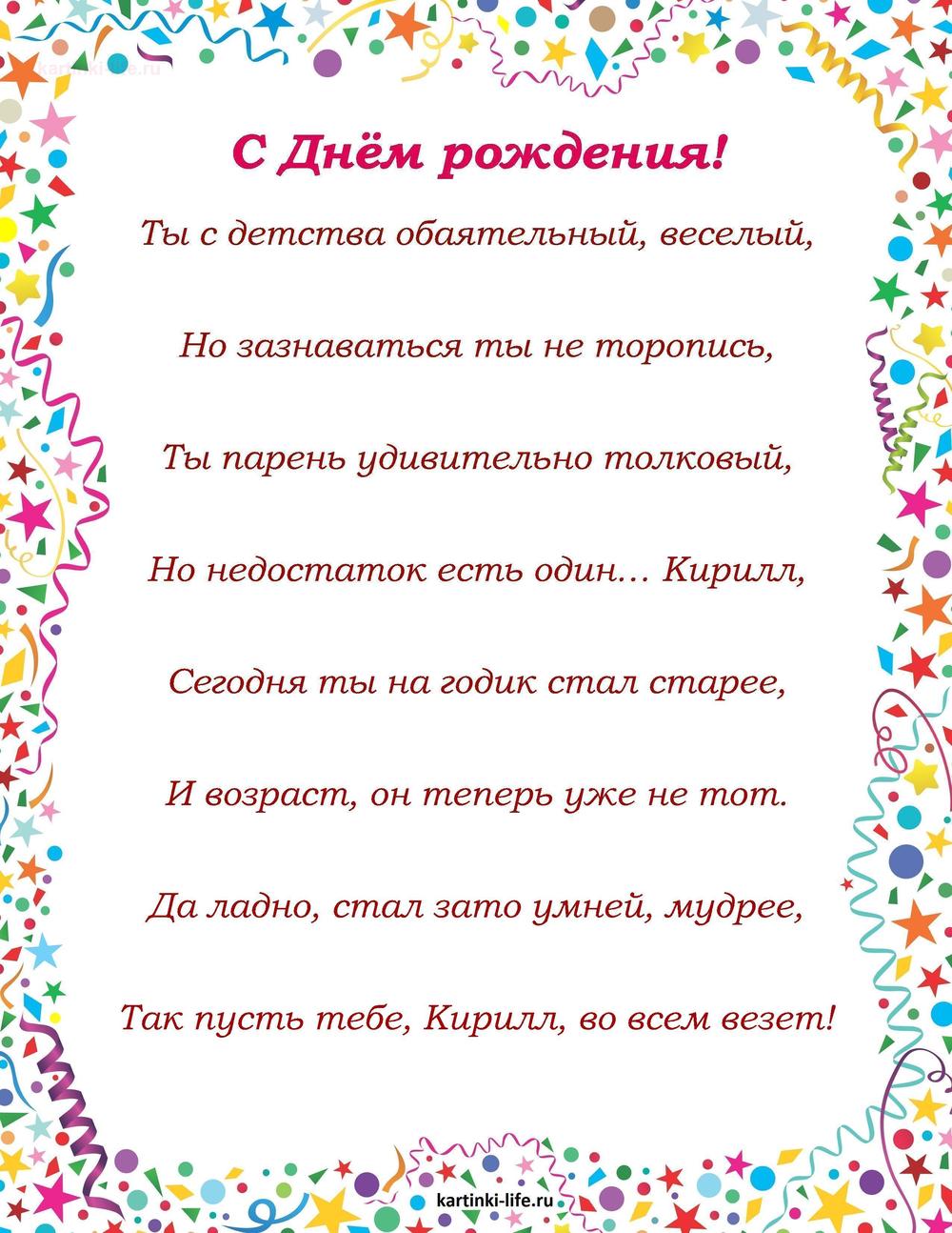 ← Предыдущая ГОЛОСОВЫЕСледующая → Выберите и нажмите! Другие варианты открыток с этим текстом Скачать Скачать Скачать Скачать Скачать Скачать Скачать Скачать Скачать Скачать Скачать Скачать Скачать Скачать Скачать СкачатьКирилл. Открытки С Днем рождения по именам. Поздравления. пока 0оставить комментарий РЕКОМЕНДОВАНО К ПРОСМОТРУ Гиф Кирюшка, поздравляем тебя с днем рождения!ОТКРЫТЬСКАЧАТЬ Картинка с поздравлением с днем рождения для КириллаОТКРЫТЬСКАЧАТЬ Картинка с днем рождения Кирилл на 13 летОТКРЫТЬСКАЧАТЬ Прикольная открытка с днем рождения мужчине КириллуОТКРЫТЬСКАЧАТЬ Картинка счастливого дня рождения КириллОТКРЫТЬСКАЧАТЬ Именные открытки с Днем рождения Кирилл. Лучшая картинка с Днем рождения.ОТКРЫТЬСКАЧАТЬ Прикольная картинка с поздравлением с днем рождения КириллуОТКРЫТЬСКАЧАТЬ Именные открытки с Днем рождения Кирилл. Лучшее поздравление с Днем рождения скачать на телефон.ОТКРЫТЬСКАЧАТЬ Именные открытки с Днем рождения Кирилл. Прикольнейшее поздравление с днем рождения.ОТКРЫТЬСКАЧАТЬ Картинка с днем рождения Кирилл на 1 годОТКРЫТЬСКАЧАТЬ Открытки С Днем рождения по именам Открытки С Днем рождения по категориям Продолжить просмотр Поздравление с Днем рождения Кириллу в стихах. Ты с детства обаятельный, веселый, Но зазнаваться ты не торопись, Ты парень