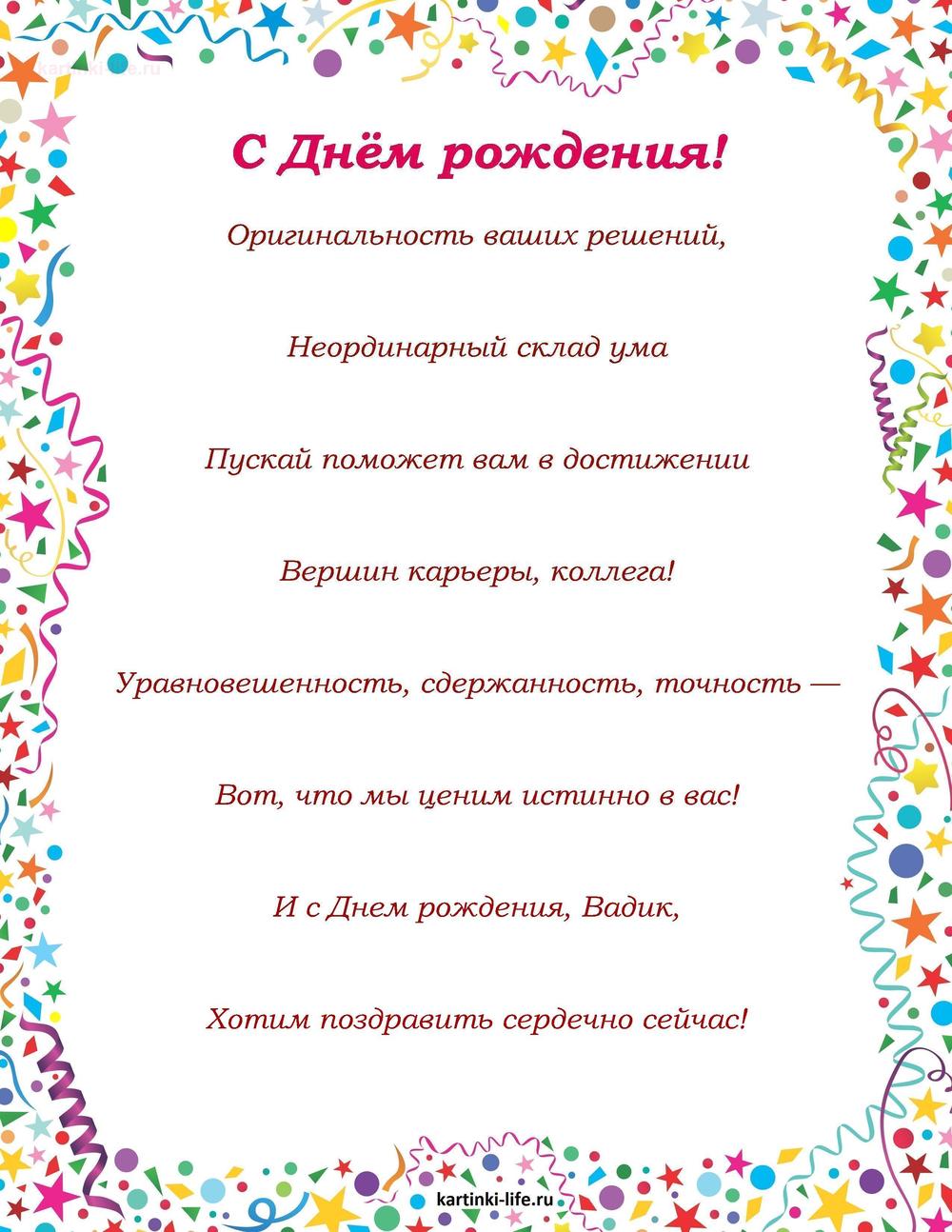 ← Предыдущая ГОЛОСОВЫЕСледующая → Выберите и нажмите! Другие варианты открыток с этим текстом Скачать Скачать Скачать Скачать Скачать Скачать Скачать Скачать Скачать Скачать Скачать Скачать Скачать Скачать Скачать СкачатьВадим. Открытки С Днем рождения по именам. Поздравления. пока 0оставить комментарий РЕКОМЕНДОВАНО К ПРОСМОТРУ Именные открытки с Днем рождения Вадим. Прикольное поздравление с Днем рождения скачать на смартфон.ОТКРЫТЬСКАЧАТЬ Именные открытки с Днем рождения Вадим. Бесплатная открытка с днем рождения на телефон.ОТКРЫТЬСКАЧАТЬ Именные открытки с Днем рождения Вадим. Веселая картинка с днем рождения на мобильный.ОТКРЫТЬСКАЧАТЬ Именные открытки с Днем рождения Вадим. Красивая картинка с Днем рождения.ОТКРЫТЬСКАЧАТЬ Именные открытки с Днем рождения Вадим. С приколом с Днем рождения скачать на мобильный.ОТКРЫТЬСКАЧАТЬ Путин поздравляет Вадима с днем рождения - всегда будь таким, какой ты естьОТКРЫТЬСКАЧАТЬ Открытка на День рождения Вадиму с красивой девушкойОТКРЫТЬСКАЧАТЬ Именные открытки с Днем рождения Вадим. Трогательная картинка с Днем рождения скачать на смартфон.ОТКРЫТЬСКАЧАТЬ Прикольная Анимация на день рождения Вадиму!ОТКРЫТЬСКАЧАТЬ Именные открытки с Днем рождения Вадим. Лучшая открытка с Днем рождения скачать.ОТКРЫТЬСКАЧАТЬ Открытки С Днем рождения по именам Открытки С Днем рождения по категориям Продолжить просмотр Поздравление с Днем рождения коллеге Вадиму в стихах. Оригинальность ваших решений, Неординарный склад ума Пускай поможет