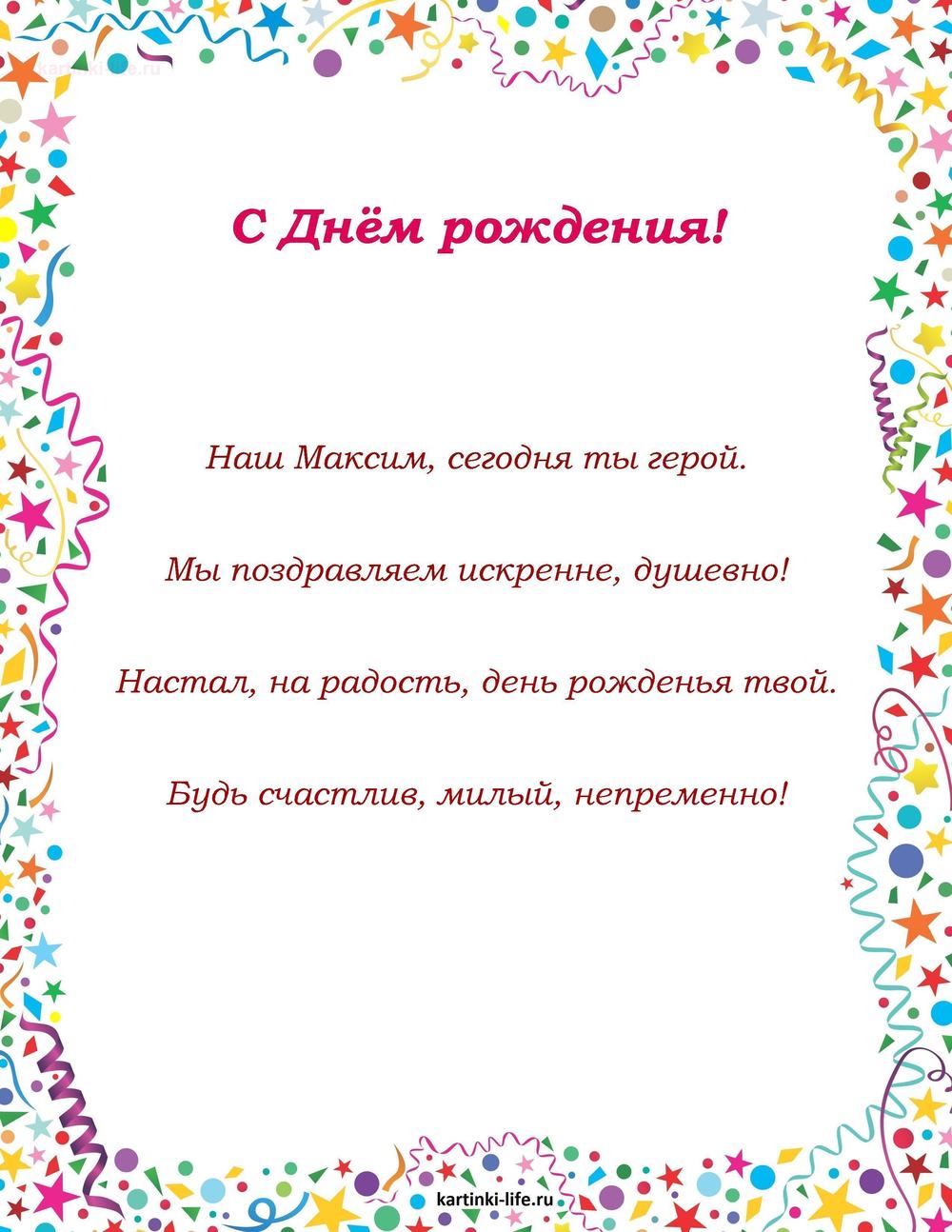← Предыдущая ГОЛОСОВЫЕСледующая → Выберите и нажмите! Другие варианты открыток с этим текстом Скачать Скачать Скачать Скачать Скачать Скачать Скачать Скачать Скачать Скачать Скачать Скачать Скачать Скачать Скачать СкачатьМаксим. Открытки С Днем рождения по именам. Поздравления. пока 0оставить комментарий РЕКОМЕНДОВАНО К ПРОСМОТРУ Прикольная картинка с днем рождения Максим мужчинеОТКРЫТЬСКАЧАТЬ Именные открытки с Днем рождения Максим. Прикольнейшее поздравление с Днем рождения.ОТКРЫТЬСКАЧАТЬ Именные открытки с Днем рождения Максим. Душевное поздравление на телефон с Днем рождения скачать на мобильный.ОТКРЫТЬСКАЧАТЬ Музыкальное поздравление анимационное. С Днем Рождения, Максим. [Максим, с днем рождения. Видеооткрытка]ОТКРЫТЬСКАЧАТЬ Прикольная картинка с поздравлением Максиму с днем рожденияОТКРЫТЬСКАЧАТЬ Именные открытки с Днем рождения Максим. Поздравление с днем рождения летием скачать на смартфон.ОТКРЫТЬСКАЧАТЬ Картинка Максиму на 1 годикОТКРЫТЬСКАЧАТЬ Поздравление с днем рождения Максиму в картинкеОТКРЫТЬСКАЧАТЬ Прикольная открытка с днем рождения МаксОТКРЫТЬСКАЧАТЬ Именные открытки с Днем рождения Максим. Бесплатно поздравление на смартфон.ОТКРЫТЬСКАЧАТЬ Открытки С Днем рождения по именам Открытки С Днем рождения по категориям Продолжить просмотр Поздравление с Днем рождения Максиму в стихах. Наш Максим, сегодня ты герой. Мы поздравляем искренне, душевно! Настал, на