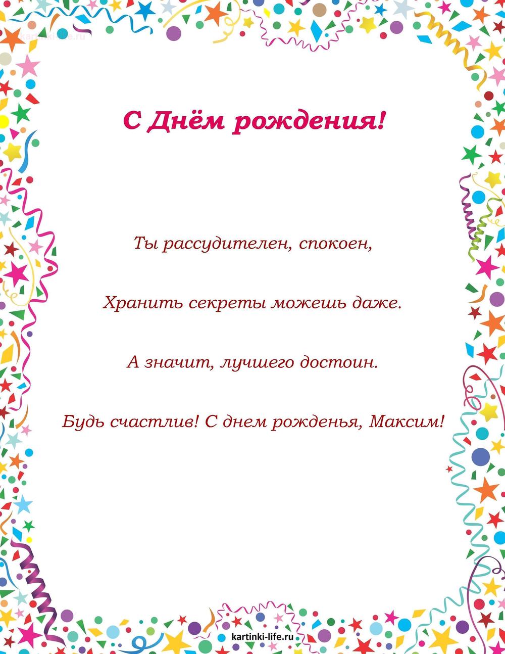 ← Предыдущая ГОЛОСОВЫЕСледующая → Выберите и нажмите! Другие варианты открыток с этим текстом Скачать Скачать Скачать Скачать Скачать Скачать Скачать Скачать Скачать Скачать Скачать Скачать Скачать Скачать Скачать СкачатьМаксим. Открытки С Днем рождения по именам. Поздравления. РЕКОМЕНДОВАНО К ПРОСМОТРУ Именные открытки с Днем рождения Максим. Бесплатно картинка с днем рождения на мобильный.ОТКРЫТЬСКАЧАТЬ Музыкальное поздравление короткое. С Днем рождения, Максим!. [Максим, с днем рождения. Видеооткрытка]ОТКРЫТЬСКАЧАТЬ Красивая открытка с днем рождения МаксимОТКРЫТЬСКАЧАТЬ Прикольная картинка Максимка с днем рожденияОТКРЫТЬСКАЧАТЬ Прикольная картинка с поздравлением Максиму с днем рожденияОТКРЫТЬСКАЧАТЬ Именные открытки с Днем рождения Максим. Открытка с приколом с Днем рождения скачать на телефон.ОТКРЫТЬСКАЧАТЬ Именные открытки с Днем рождения Максим. Красивое поздравление с Днем рождения скачать на смартфон.ОТКРЫТЬСКАЧАТЬ Картинка Максимке на 1 годикОТКРЫТЬСКАЧАТЬ Картинка Максу на 2 годаОТКРЫТЬСКАЧАТЬ Картинка Максим с днем рожденияОТКРЫТЬСКАЧАТЬ Открытки С Днем рождения по именам Открытки С Днем рождения по категориям Продолжить просмотр Поздравление с Днем рождения Максиму в стихах. Ты рассудителен, спокоен, Хранить секреты можешь даже. А значит, лучшего достоин.