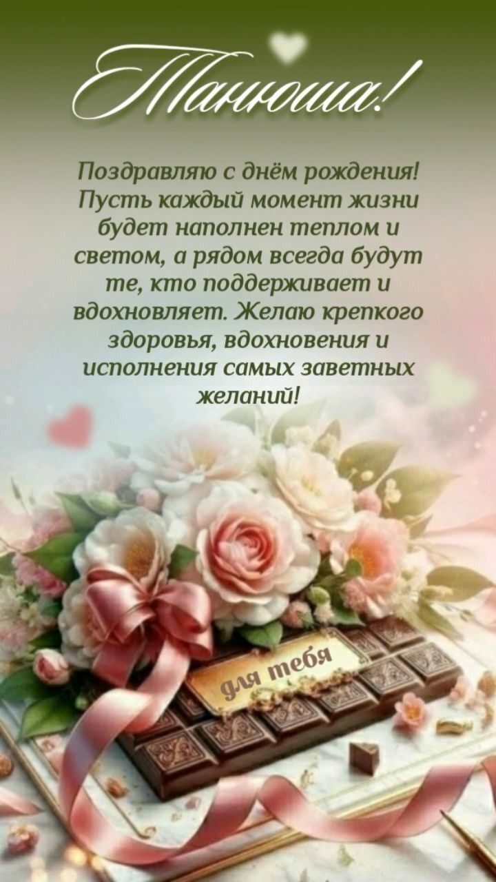 ← Предыдущая ГОЛОСОВЫЕСледующая → Выберите и нажмите! Другие варианты открыток с этим текстом Скачать Скачать Скачать Скачать Скачать Скачать Скачать Скачать Скачать Скачать Скачать Скачать Скачать Скачать Скачать СкачатьТатьяна. Открытки С Днем рождения по именам. Поздравления. пока 0оставить комментарий РЕКОМЕНДОВАНО К ПРОСМОТРУ [С днем рождения] открытки [женские имена] [Татьяна Таня]. На телефон скачать картинку с Днем рождения.ОТКРЫТЬСКАЧАТЬ Танюша, с праздником! Открытки с именами. Танюша, Танечка, Татьяна с праздником тебя ведь он сегодня твой, желаю радости большой и быть самой собой.ОТКРЫТЬСКАЧАТЬ Открытка - букет рисованных цветов Танюше на День РожденияОТКРЫТЬСКАЧАТЬ Открытка с днем рождения Татьяне с пожеланиями. Цветы и шоколад. Танюша! Поздравляю с днем рождения! Пусть каждый момент жизни будет наполнен теплом и светом, а рядом всегда будут те, кто поддерживает и вдохновляет. Желаю крепкого здоровья, вдохновения и исполнения самых заветных желаний!ОТКРЫТЬСКАЧАТЬ [С днем рождения] открытки [женские имена] [Татьяна Таня]. Красивая картинка с Днем рождения скачать на смартфон.ОТКРЫТЬСКАЧАТЬ С ДНЕМ РОЖДЕНИЯ, ТАНЮШКА, от зайки. [Татьяна, с днем рождения. Видеооткрытка]ОТКРЫТЬСКАЧАТЬ Именные открытки с Днем рождения Татьяне. Красивые слова с Днем рождения скачать на смартфон.ОТКРЫТЬСКАЧАТЬ Красивая мерцающая гиф открытка букетом красных роз на день рождения Татьяне!ОТКРЫТЬСКАЧАТЬ Именные открытки с Днем рождения Татьяна, Таня. Поздравление с Днем рождения скачать на мобильный.ОТКРЫТЬСКАЧАТЬ Открытка - большой красивый букет на голубом фоне для ТаниОТКРЫТЬСКАЧАТЬ Открытки С Днем рождения по именам Открытки С Днем рождения по категориям Продолжить просмотр Поздравление с Днем рождения Татьяне в прозе. Ты такая юная, Танюша, твоя жизнь только-только начинается. Я хочу пожелать