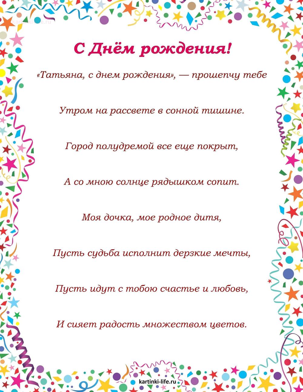← Предыдущая ГОЛОСОВЫЕСледующая → Выберите и нажмите! Другие варианты открыток с этим текстом Скачать Скачать Скачать Скачать Скачать Скачать Скачать Скачать Скачать Скачать Скачать Скачать Скачать Скачать Скачать СкачатьТатьяна. Открытки С Днем рождения по именам. Поздравления. РЕКОМЕНДОВАНО К ПРОСМОТРУ Для прекрасной Татьяны. Открытки с именами. Розы для самой нежной, заботливой и очаровательной Танечки.ОТКРЫТЬСКАЧАТЬ Красивая открытка Поздравление с днем рождения Татьяне. [Татьяна, с днем рождения. Видеооткрытка]ОТКРЫТЬСКАЧАТЬ Именные открытки с Днем рождения Татьяна. Лучшая картинка.ОТКРЫТЬСКАЧАТЬ Таня, С днем рождения. Поздравления от Путина специально для вас. [Татьяна, с днем рождения. Видеооткрытка]ОТКРЫТЬСКАЧАТЬ Красные розы и пожелание для ТаниОТКРЫТЬСКАЧАТЬ Именные открытки с Днем рождения Татьяна. Картинка с Днем рождения скачать на мобильный.ОТКРЫТЬСКАЧАТЬ Музыкальное поздравление короткое. С Днем рождения, Татьяна!!!. [Татьяна, с днем рождения. Видеооткрытка]ОТКРЫТЬСКАЧАТЬ Анимационная картинка за Татьяну!ОТКРЫТЬСКАЧАТЬ Красивая прикольная картинка с днем рождения ТанюхаОТКРЫТЬСКАЧАТЬ Таня, Танечка, Танюша. Песня, от Которой поет Душа. [Татьяна, с днем рождения. Видеооткрытка]ОТКРЫТЬСКАЧАТЬ Открытки С Днем рождения по именам Открытки С Днем рождения по категориям Продолжить просмотр Поздравление с Днем рождения Татьяне в стихах. «Татьяна, с днем рождения», — прошепчу тебе Утром на рассвете в сонной тишине.