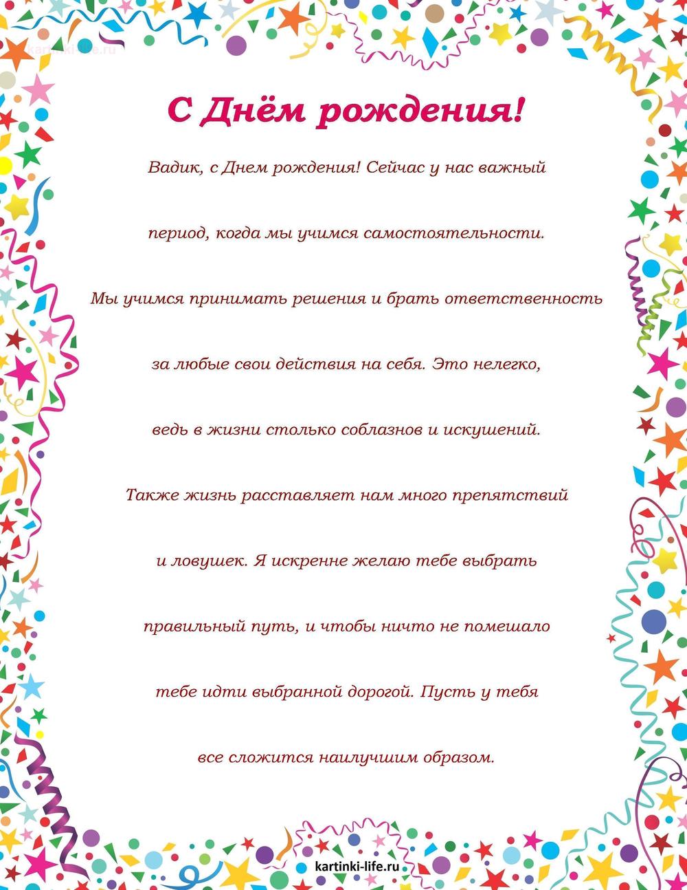 ← Предыдущая ГОЛОСОВЫЕСледующая → Выберите и нажмите! Другие варианты открыток с этим текстом Скачать Скачать Скачать Скачать Скачать Скачать Скачать Скачать Скачать Скачать Скачать Скачать Скачать Скачать Скачать СкачатьВадим. Открытки С Днем рождения по именам. Поздравления. РЕКОМЕНДОВАНО К ПРОСМОТРУ Именные открытки с Днем рождения Вадим. Поздравление с юмором с Днем рождения.ОТКРЫТЬСКАЧАТЬ Именные открытки с Днем рождения Вадим. На Днем рождения скачать на смартфон.ОТКРЫТЬСКАЧАТЬ С Днем Рождения, Вадим. Красочное поздравление. [Вадим, с днем рождения]ОТКРЫТЬСКАЧАТЬ Именные открытки с Днем рождения Вадим. Открытка с приколом с Днем рождения.ОТКРЫТЬСКАЧАТЬ Именные открытки с Днем рождения Вадим. Поздравление.ОТКРЫТЬСКАЧАТЬ [С днем рождения] открытки [мужские имена] [Вадим]. Открытка скачать на телефон с Днем рождения.ОТКРЫТЬСКАЧАТЬ Именные открытки с Днем рождения Вадим. Картинка на Днем рождения скачать на телефон.ОТКРЫТЬСКАЧАТЬ Именные открытки с Днем рождения Вадим. Картинка красивая с Днем рождения.ОТКРЫТЬСКАЧАТЬ Именные открытки с Днем рождения Вадим. Бесплатно картинка с днем рождения на телефон.ОТКРЫТЬСКАЧАТЬ Именные открытки с Днем рождения Вадим. Трогательная картинка с Днем рождения скачать.ОТКРЫТЬСКАЧАТЬ Открытки С Днем рождения по именам Открытки С Днем рождения по категориям Продолжить просмотр Поздравление с Днем рождения Вадиму в прозе. Вадик, с Днем рождения! Сейчас у нас важный период, когда мы учимся самостоятельности.