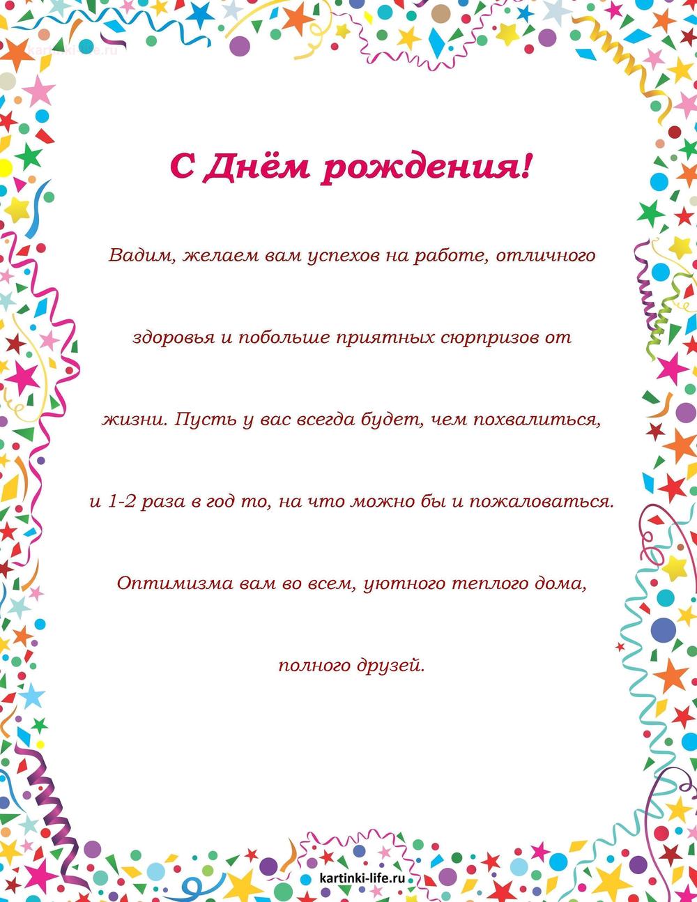 ← Предыдущая ГОЛОСОВЫЕСледующая → Выберите и нажмите! Другие варианты открыток с этим текстом Скачать Скачать Скачать Скачать Скачать Скачать Скачать Скачать Скачать Скачать Скачать Скачать Скачать Скачать Скачать СкачатьВадим. Открытки С Днем рождения по именам. Поздравления. РЕКОМЕНДОВАНО К ПРОСМОТРУ С днем рождения Вадим. Прикольное видео поздравление. [Вадим, с днем рождения]ОТКРЫТЬСКАЧАТЬ Открытка на День рождения Вадиму с красивой девушкойОТКРЫТЬСКАЧАТЬ Именные открытки с Днем рождения Вадим. Бесплатная открытка с днем рождениям.ОТКРЫТЬСКАЧАТЬ Картинка с машиной в горах на День рождения ВадимуОТКРЫТЬСКАЧАТЬ Фото открытка с днем рождения ВадимОТКРЫТЬСКАЧАТЬ Именные открытки с Днем рождения Вадим. Веселая картинка с днем рождения на мобильный.ОТКРЫТЬСКАЧАТЬ Именные открытки с Днем рождения Вадим. Трогательная картинка с Днем рождения скачать.ОТКРЫТЬСКАЧАТЬ Детская картинка с днем рождения ВадикОТКРЫТЬСКАЧАТЬ Именные открытки с Днем рождения Вадим. С юмором с Днем рождения.ОТКРЫТЬСКАЧАТЬ С Днем Рождения, Вадим. Красочное поздравление. [Вадим, с днем рождения]ОТКРЫТЬСКАЧАТЬ Открытки С Днем рождения по именам Открытки С Днем рождения по категориям Продолжить просмотр Поздравление с Днем рождения Вадиму в прозе. Вадим, желаем вам успехов на работе, отличного здоровья и побольше приятных