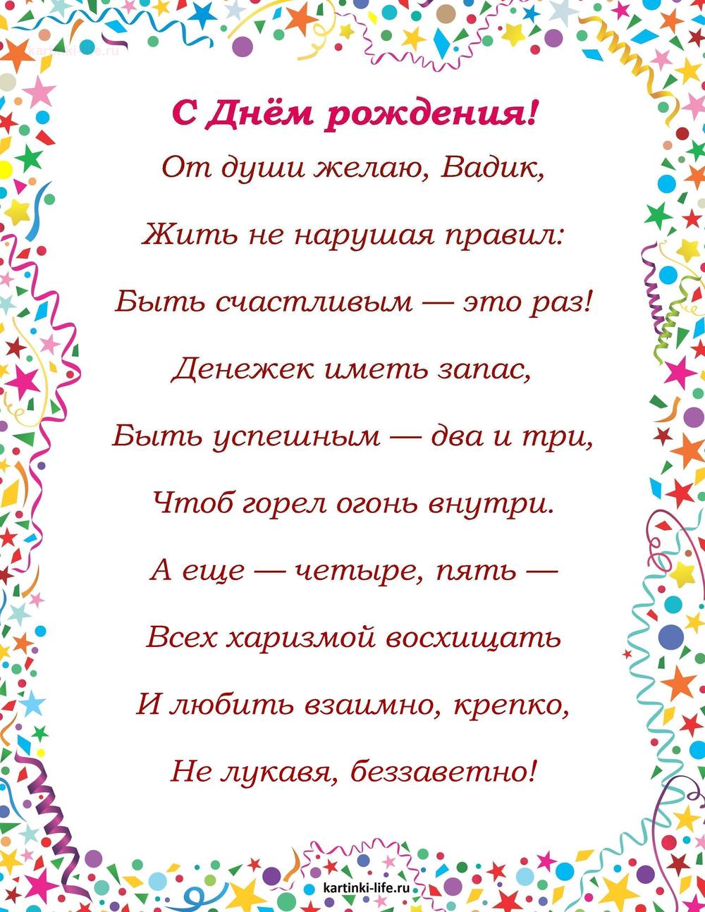 ← Предыдущая ГОЛОСОВЫЕСледующая → Выберите и нажмите! Другие варианты открыток с этим текстом Скачать Скачать Скачать Скачать Скачать Скачать Скачать Скачать Скачать Скачать Скачать Скачать Скачать Скачать Скачать СкачатьВадим. Открытки С Днем рождения по именам. Поздравления. РЕКОМЕНДОВАНО К ПРОСМОТРУ Именные открытки с Днем рождения Вадим. На мобильный скачать с Днем рождения.ОТКРЫТЬСКАЧАТЬ Именные открытки с Днем рождения Вадим. С поздравлением с Днем рождения скачать на мобильный.ОТКРЫТЬСКАЧАТЬ Именные открытки с Днем рождения Вадим. Открытка на День рождения скачать на мобильный.ОТКРЫТЬСКАЧАТЬ С Днем Рождения Вадим Красивое Поздравление. [Вадим, с днем рождения]ОТКРЫТЬСКАЧАТЬ Именные открытки с Днем рождения Вадим. Лучшая открытка с Днем рождения скачать.ОТКРЫТЬСКАЧАТЬ С Днем рождения,Вадим!!! Короткое поздравление. [Вадим, с днем рождения]ОТКРЫТЬСКАЧАТЬ Картинка Вадим с днюхойОТКРЫТЬСКАЧАТЬ Именные открытки с Днем рождения Вадим. Открытка на Днем рождения.ОТКРЫТЬСКАЧАТЬ Именные открытки с Днем рождения Вадим. Трогательная открытка с Днем рождения скачать.ОТКРЫТЬСКАЧАТЬ открытка с днем рождения Вадим. Короткое поздравление от леприкона. [Вадим, с днем рождения]ОТКРЫТЬСКАЧАТЬ Открытки С Днем рождения по именам Открытки С Днем рождения по категориям Продолжить просмотр Поздравление с Днем рождения Вадиму в стихах. От души желаю, Вадик, Жить не нарушая правил: Быть счастливым — это раз! Денежек