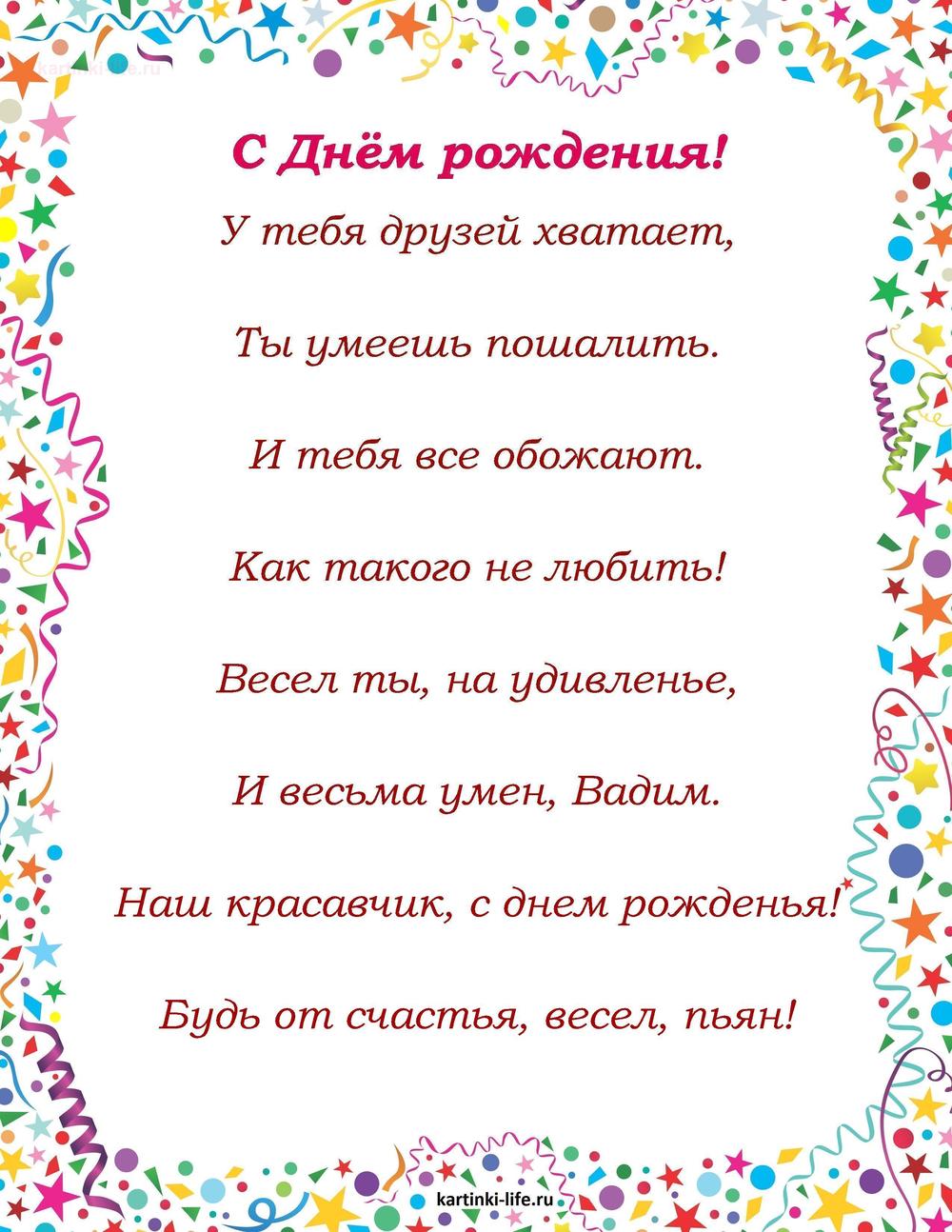 ← Предыдущая ГОЛОСОВЫЕСледующая → Выберите и нажмите! Другие варианты открыток с этим текстом Скачать Скачать Скачать Скачать Скачать Скачать Скачать Скачать Скачать Скачать Скачать Скачать Скачать Скачать Скачать СкачатьВадим. Открытки С Днем рождения по именам. Поздравления. РЕКОМЕНДОВАНО К ПРОСМОТРУ Именные открытки с Днем рождения Вадим. Красивое поздравление с Днем рождения скачать на мобильный.ОТКРЫТЬСКАЧАТЬ Картинка с часами, букетом роз и поздравлением для ВадимаОТКРЫТЬСКАЧАТЬ Именные открытки с Днем рождения Вадим. Открытка скачать с Днем рождения.ОТКРЫТЬСКАЧАТЬ Именные открытки с Днем рождения Вадим. Душевное поздравление на телефон с Днем рождения.ОТКРЫТЬСКАЧАТЬ С Днем Рождения Вадим Красивое Поздравление. [Вадим, с днем рождения]ОТКРЫТЬСКАЧАТЬ Именные открытки с Днем рождения Вадим. Бесплатно поздравление с днем рождения на телефон.ОТКРЫТЬСКАЧАТЬ Именные открытки с Днем рождения Вадим. Красивая картинка с Днем рождения.ОТКРЫТЬСКАЧАТЬ Именные открытки с Днем рождения Вадим. Открытка с Днем рождения скачать на телефон.ОТКРЫТЬСКАЧАТЬ Именные открытки с Днем рождения Вадим. Открытка с приколом с Днем рождения.ОТКРЫТЬСКАЧАТЬ С Днем Рождения, Вадим! Красивая песня для тебя. [Вадим, с днем рождения]ОТКРЫТЬСКАЧАТЬ Открытки С Днем рождения по именам Открытки С Днем рождения по категориям Продолжить просмотр Поздравление с Днем рождения Вадиму в стихах. У тебя друзей хватает, Ты умеешь пошалить. И тебя все обожают. Как такого не