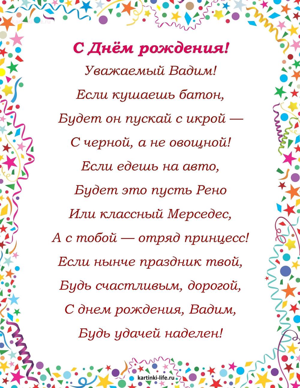 ← Предыдущая ГОЛОСОВЫЕСледующая → Выберите и нажмите! Другие варианты открыток с этим текстом Скачать Скачать Скачать Скачать Скачать Скачать Скачать Скачать Скачать Скачать Скачать Скачать Скачать Скачать Скачать СкачатьВадим. Открытки С Днем рождения по именам. Поздравления. пока 0оставить комментарий РЕКОМЕНДОВАНО К ПРОСМОТРУ Прикольная Анимация на день рождения Вадиму!ОТКРЫТЬСКАЧАТЬ Именные открытки с Днем рождения Вадим. Открытка скачать с Днем рождения.ОТКРЫТЬСКАЧАТЬ С днем рождения Вадим. Песня для Вадима. [Вадим, с днем рождения]ОТКРЫТЬСКАЧАТЬ Именные открытки с Днем рождения Вадим. Прикольнейшее поздравление с днем рождения скачать на смартфон.ОТКРЫТЬСКАЧАТЬ Картинка с днем рождения Вадик на 30 летОТКРЫТЬСКАЧАТЬ Именные открытки с Днем рождения Вадим. С днем рождения поздравление.ОТКРЫТЬСКАЧАТЬ С Днем Рождения, Вадим. Красочное прикольное поздравление. [Вадим, с днем рождения]ОТКРЫТЬСКАЧАТЬ Картинка с днем рождения Вадим!ОТКРЫТЬСКАЧАТЬ Картинка с поздравлением Вадику с днем рожденияОТКРЫТЬСКАЧАТЬ Картинка с машиной в горах на День рождения ВадимуОТКРЫТЬСКАЧАТЬ Открытки С Днем рождения по именам Открытки С Днем рождения по категориям Продолжить просмотр Поздравление с Днем рождения Вадиму в стихах. Уважаемый Вадим! Если кушаешь батон, Будет он пускай с икрой — С черной, а