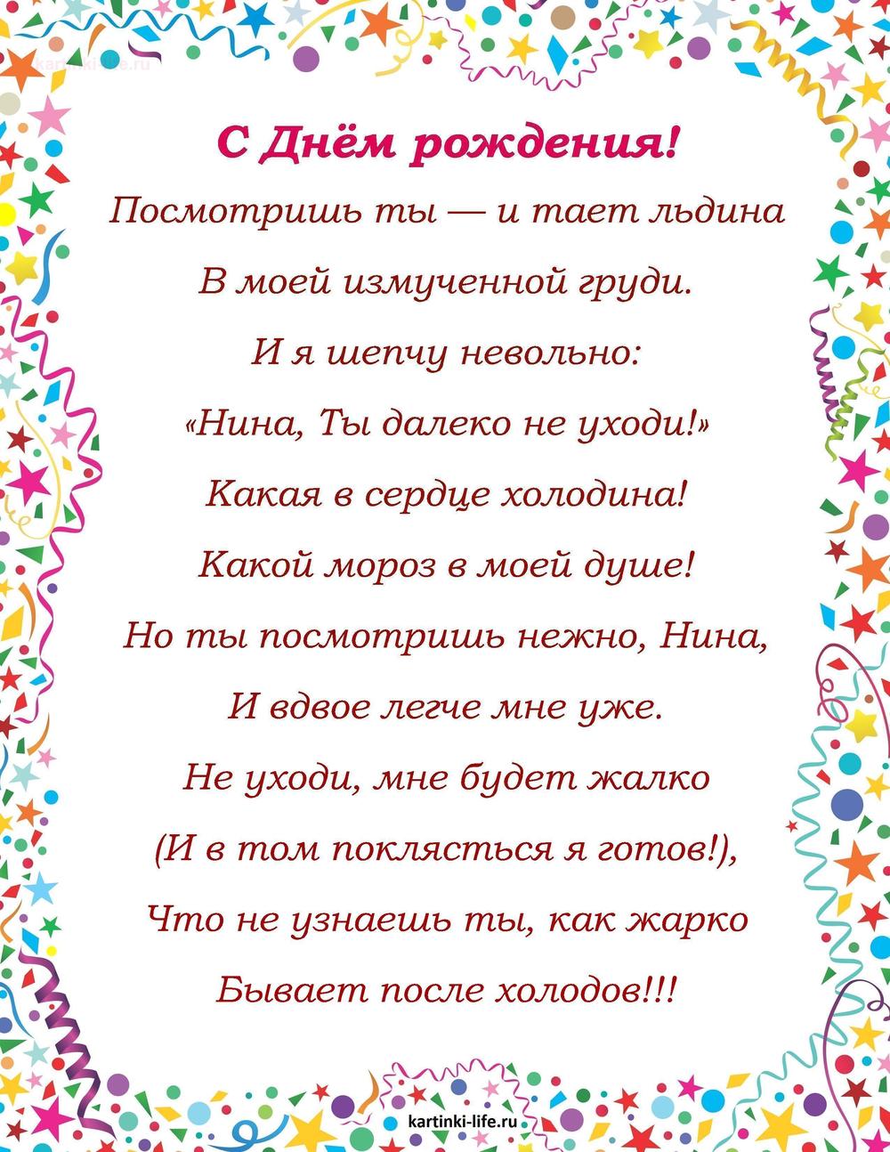 ← Предыдущая ГОЛОСОВЫЕСледующая → Выберите и нажмите! Другие варианты открыток с этим текстом Скачать Скачать Скачать Скачать Скачать Скачать Скачать Скачать Скачать Скачать Скачать Скачать Скачать Скачать Скачать СкачатьНина. Открытки С Днем рождения по именам. Поздравления. пока 0оставить комментарий РЕКОМЕНДОВАНО К ПРОСМОТРУ С Днем Рождения, Нина. Музыкальное поздравление яркое. [Нина, с днем рождения. Видеооткрытка]ОТКРЫТЬСКАЧАТЬ [С днем рождения] открытки [женские имена] [Нина]. Душевное поздравление на телефон.ОТКРЫТЬСКАЧАТЬ Именные открытки с Днем рождения Нина. Картинка на День рождения скачать на мобильный.ОТКРЫТЬСКАЧАТЬ Гиф с днем рождения для нины!ОТКРЫТЬСКАЧАТЬ С Днем Ангела, Нина! Желаю огромного Счастья! - Музыкальная открытка с пожеланиями. [Нина, с днем рождения. Видеооткрытка]ОТКРЫТЬСКАЧАТЬ Большая красная роза Нине на День РожденияОТКРЫТЬСКАЧАТЬ Открытка с розой Нине к Дню рожденияОТКРЫТЬСКАЧАТЬ [С днем рождения] открытки [женские имена] [Нина]. Прикольнейшая открытка с Днем рождения скачать.ОТКРЫТЬСКАЧАТЬ [С днем рождения] открытки [женские имена] [Нина]. Прикольное поздравление с Днем рождения скачать на телефон.ОТКРЫТЬСКАЧАТЬ Именные открытки с Днем рождения Нина. Бесплатная картинка.ОТКРЫТЬСКАЧАТЬ Открытки С Днем рождения по именам Открытки С Днем рождения по категориям Продолжить просмотр Поздравление с днем рождения женщине по имени Нина. Посмотришь ты — и тает льдина В моей измученной груди. И я шепчу невольно: