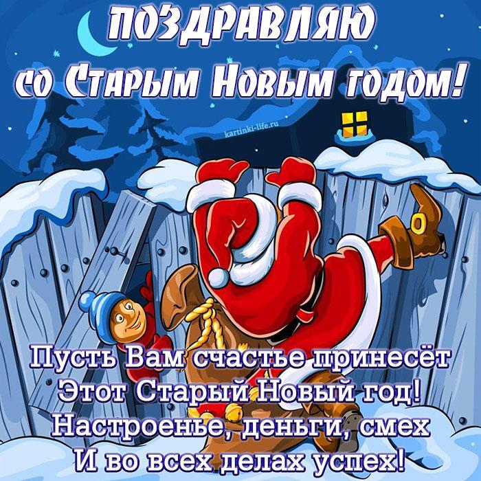 Поздравляю со Старым Новым годом! Пусть Вам счастье принесет Этот Старый Новый год! Настроенье, деньги, смех И во всех делах успех!