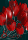 Прекрасная открытка с Международным Женским Днем 8 марта gif анимационная мерцающая. Красные тюльпаны.