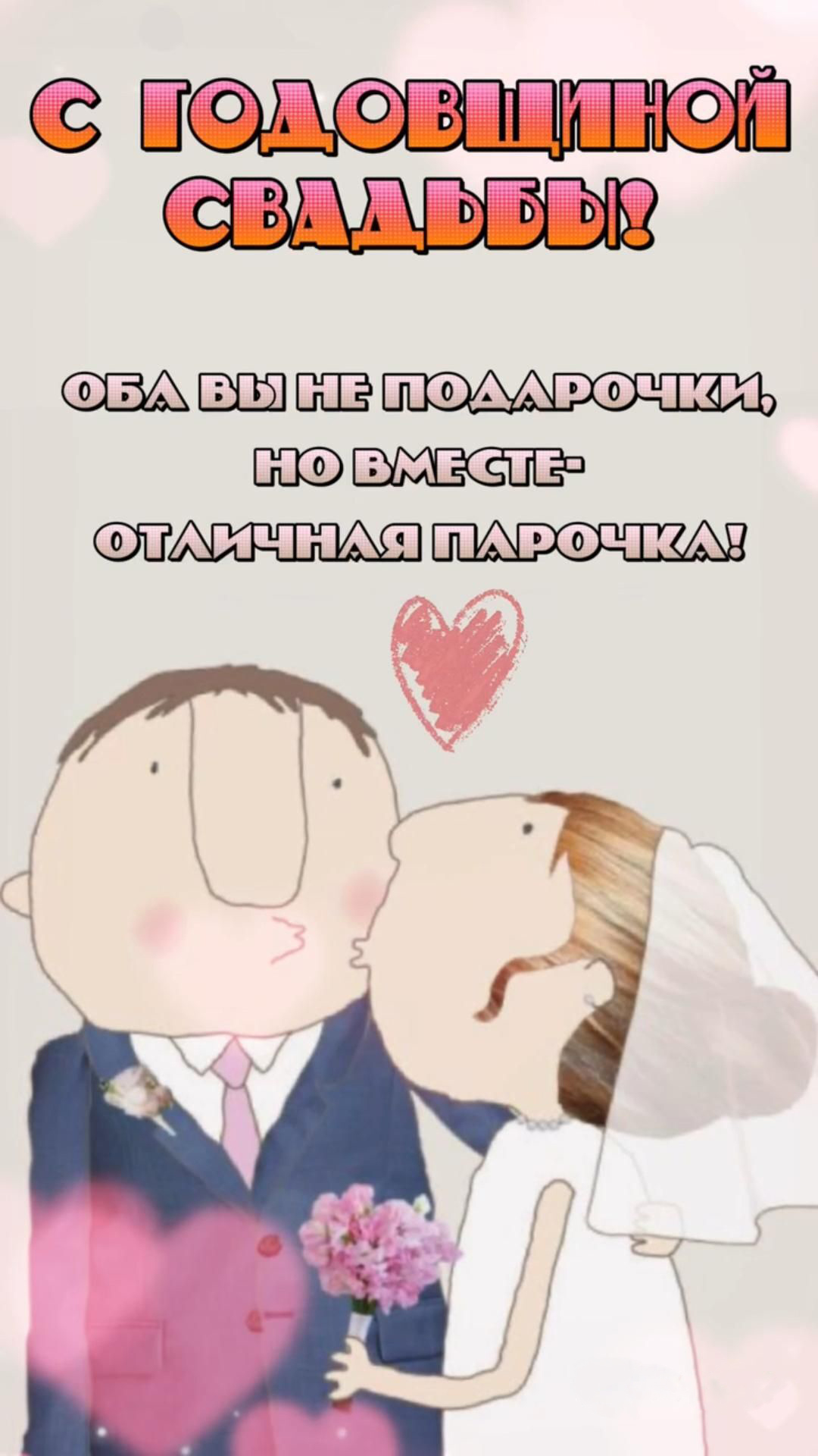 Прикольная открытка на годовщину свадьбы со смайликами.
