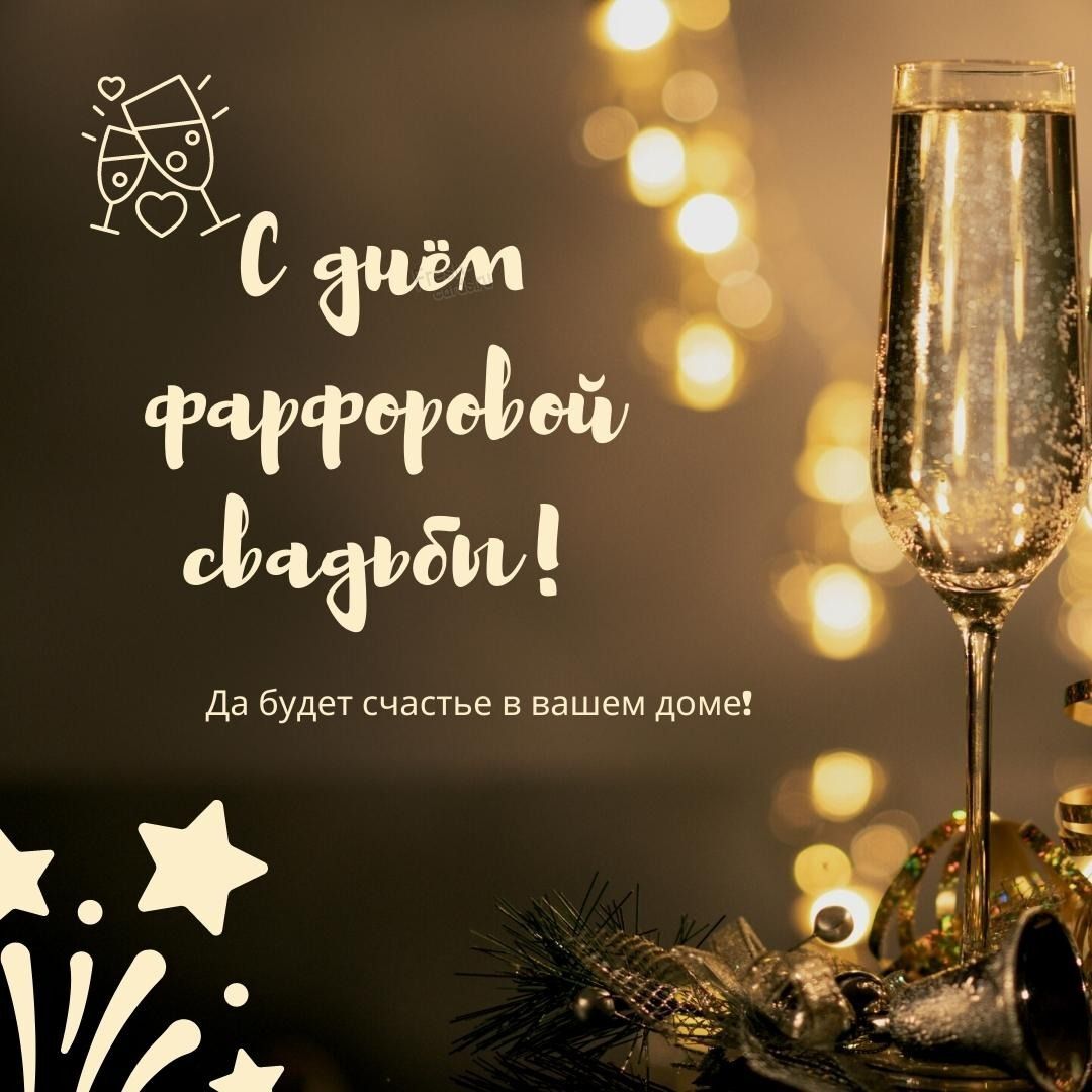С днем фарфоровой свадьбы. Шампанское и пожелание.