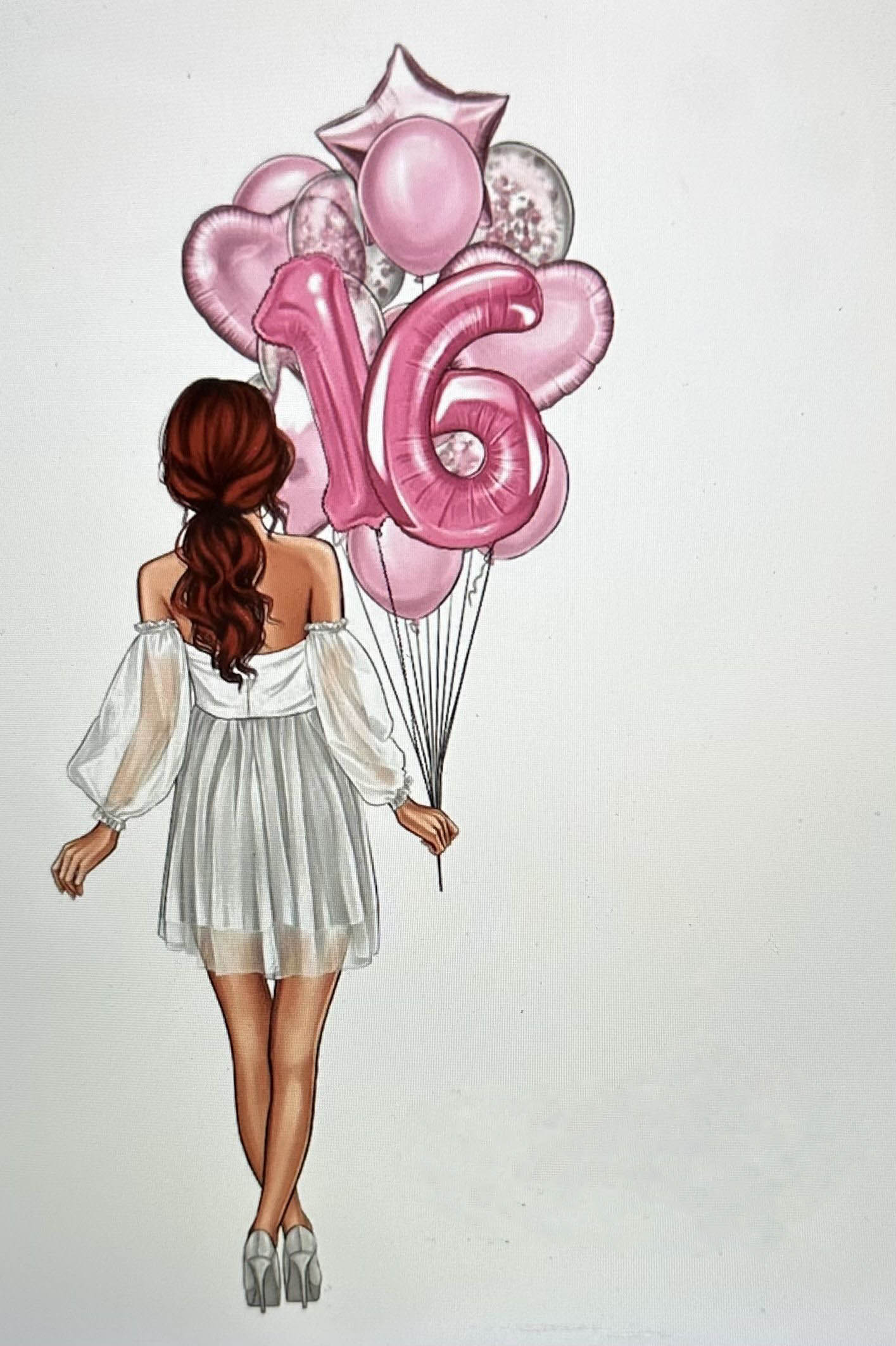 С днем рождения 16 лет. Девушка с шариками.