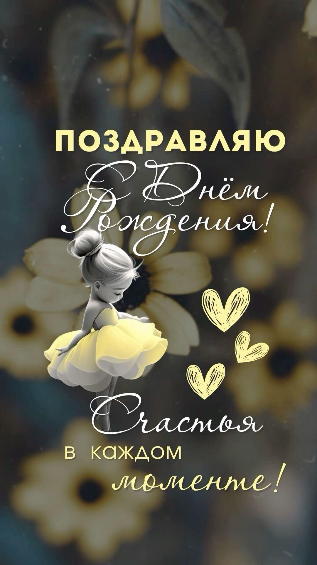 С днем рождения. Девочка, желтые сердечки, пожелания.