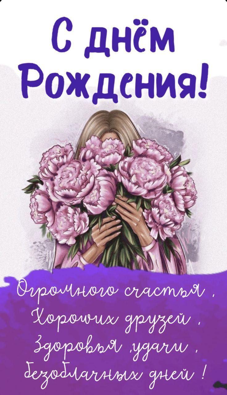 С днем рождения девушке. Девушка с сиреневыми цветами и пожелания.