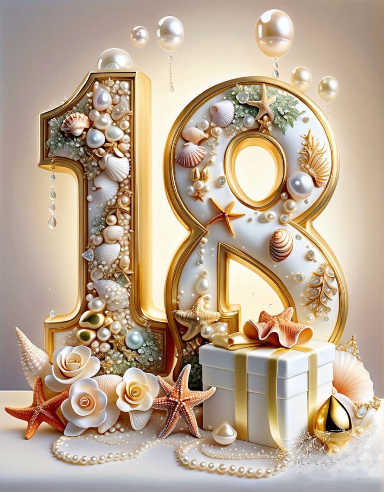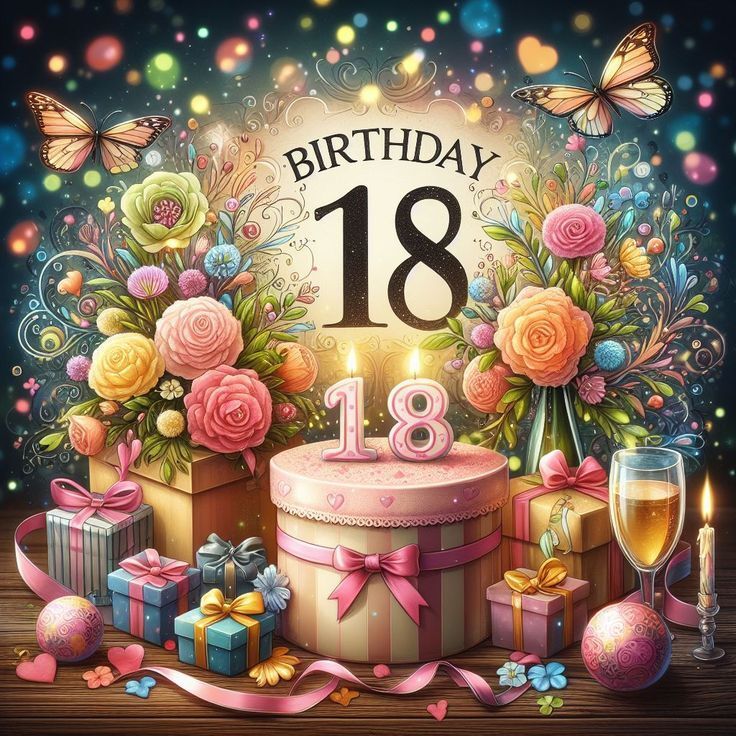 С днем рождения девушке на 18 лет. Девушка, бабочки, подарки.