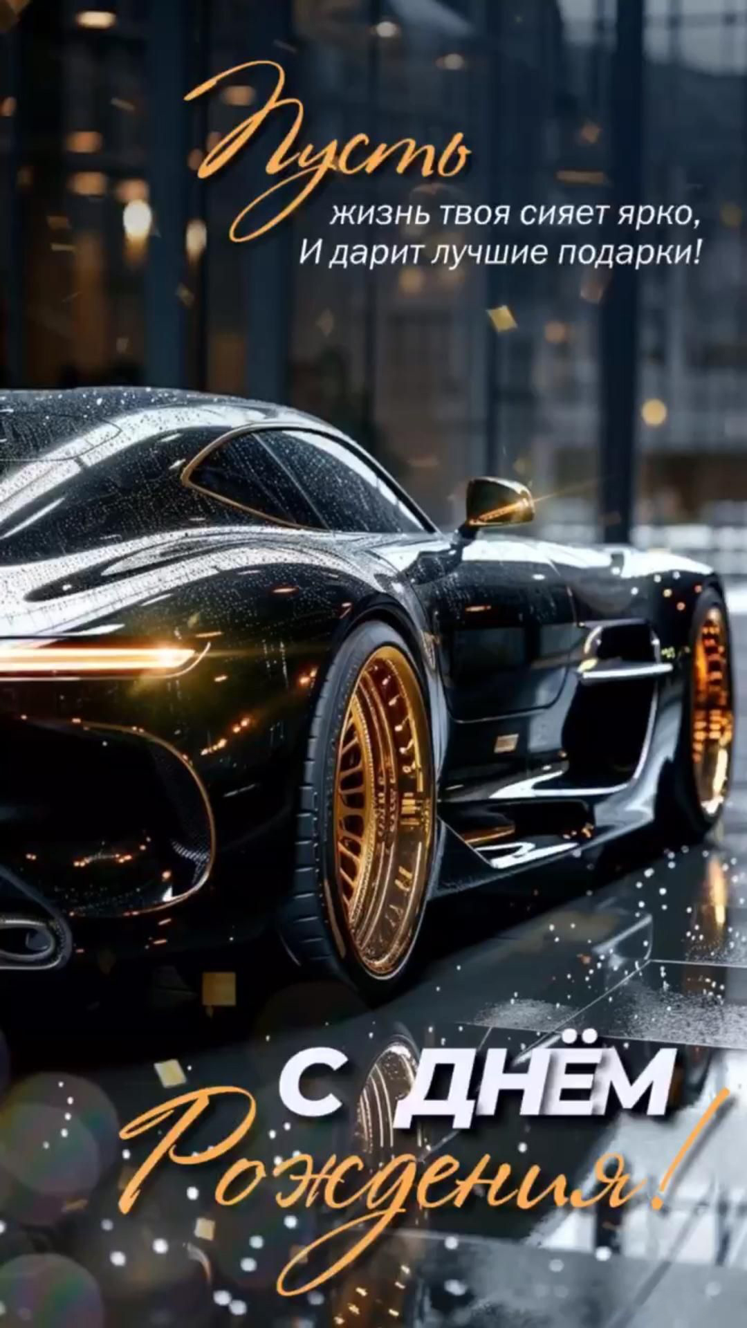 С днем рождения мужчине. Крутой автомобиль и пожелание, роза.