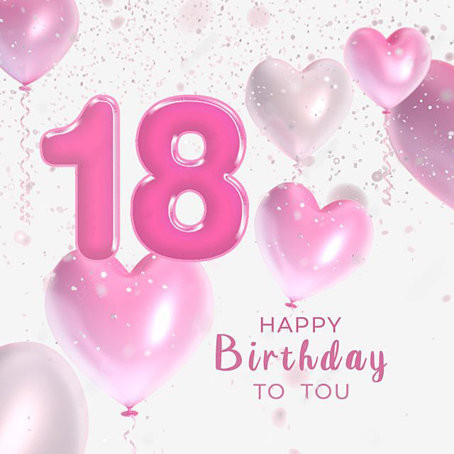 С днем рождения на 18 лет на английском. Цифры и шарики. Happy birthday.