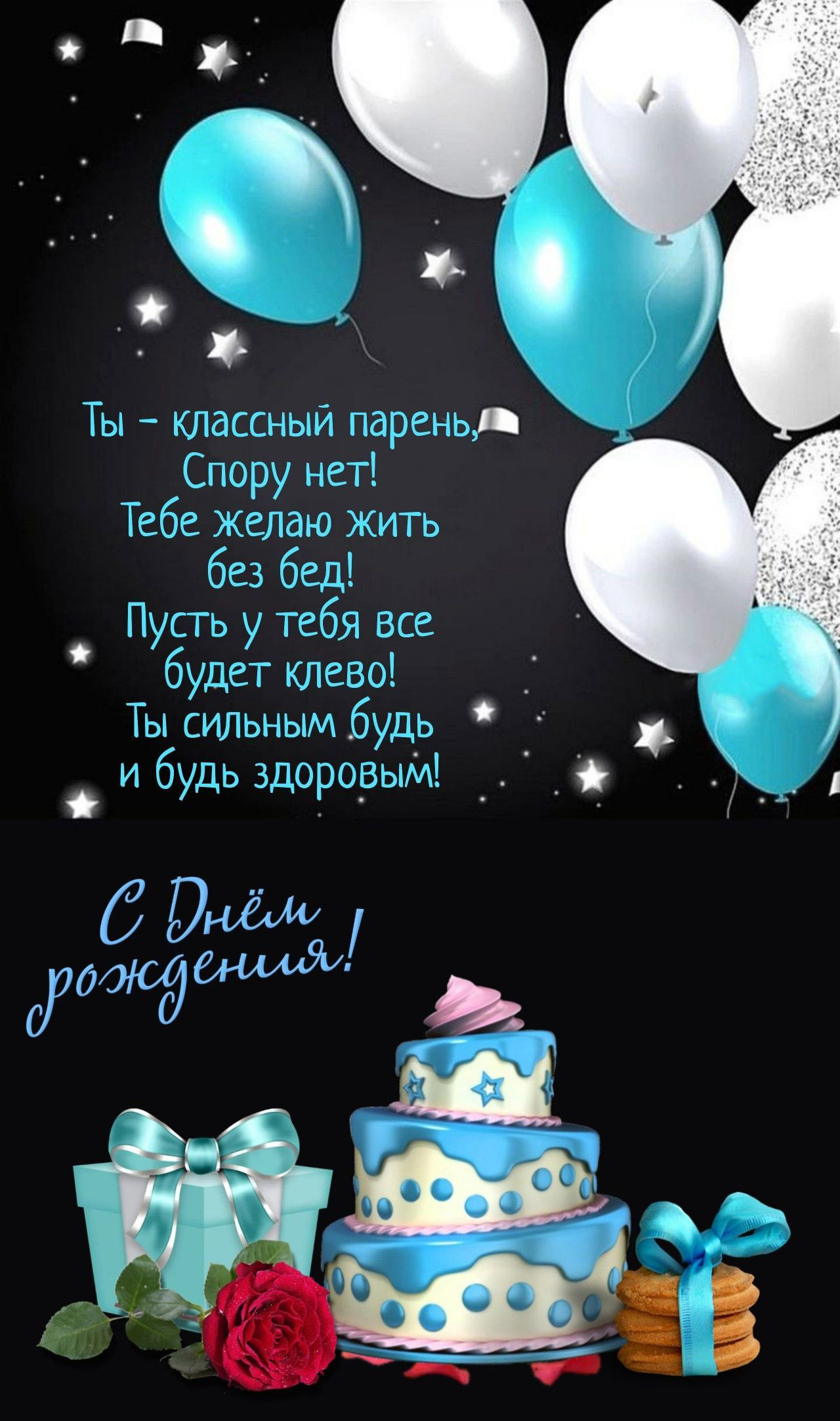 С днем рождения парню. Шарики с пожеланиями, подарки.