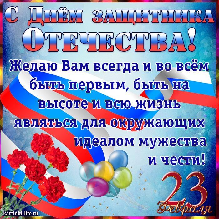 С Днем защитника отечества! Желаю Вам всегда и во всем быть первым, быть на высоте и всю жизнь являться для окружающих идеалом мужества и чести!