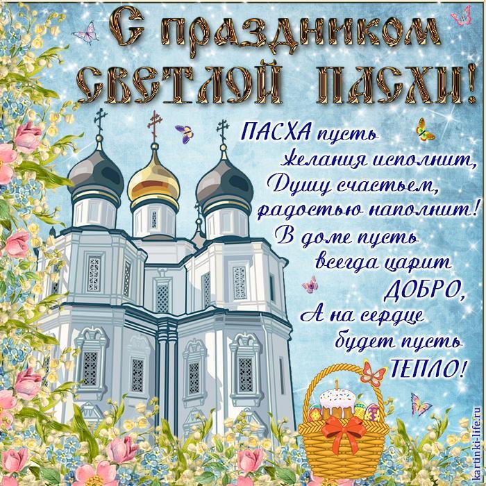 С праздником Светлой Пасхи! Пасха пусть желания исполнит, Душу счастьем, радостью наполнит! В доме пусть всегда царит добро, А на сердце будет пусть тепло!