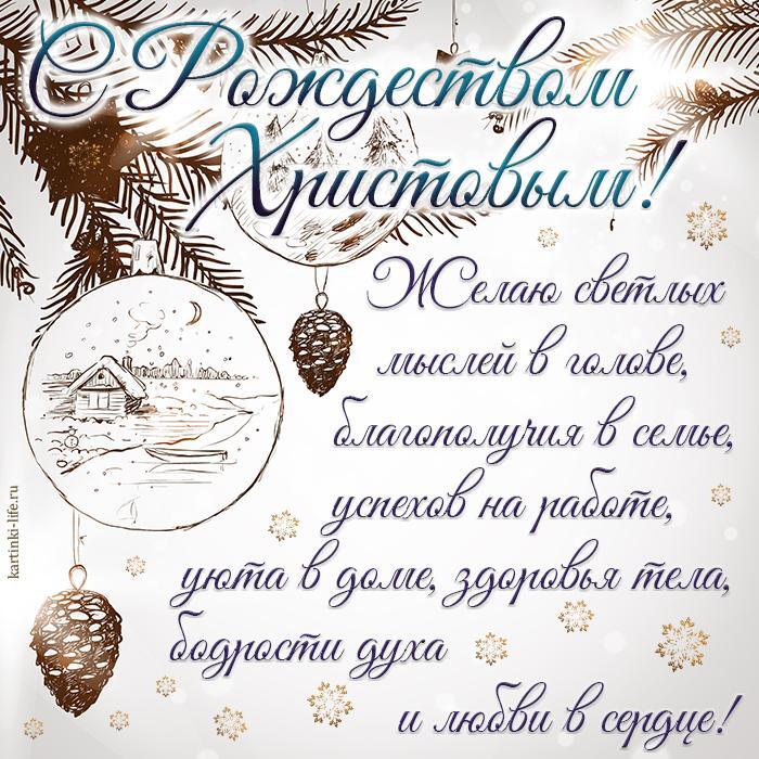 С Рождеством Христовым! Желаю светлых мыслей в голове, благополучия в семье, успехов на работе, уюта в доме, здоровья тела, бодрости духа и любви в сердце! Красивая открытка с Рождеством.