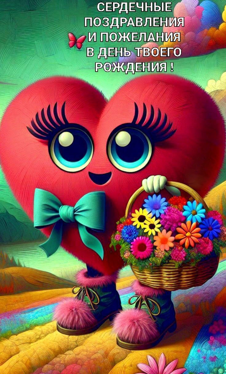 Сердечные поздравления и пожелания в день твоего рождения! Сердце дарит цветы.