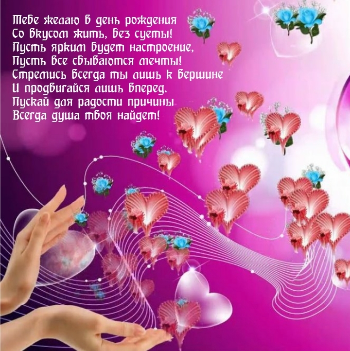 Тебе желаю в день рожденья жить, наслаждаясь каждым днем.